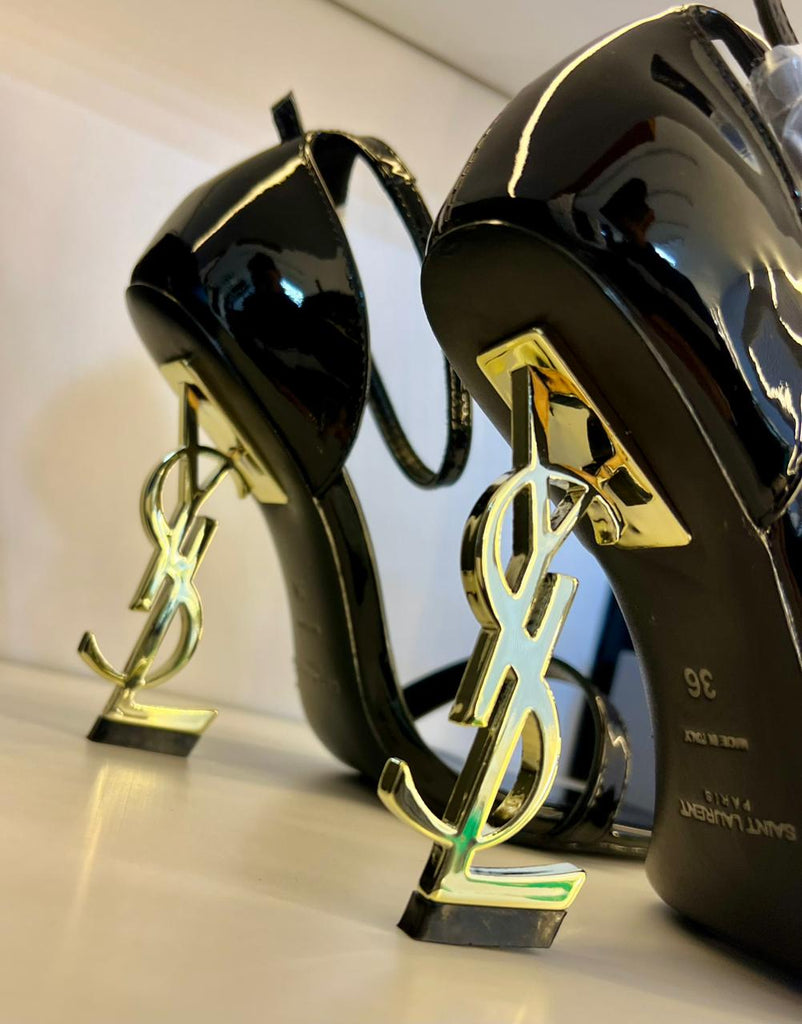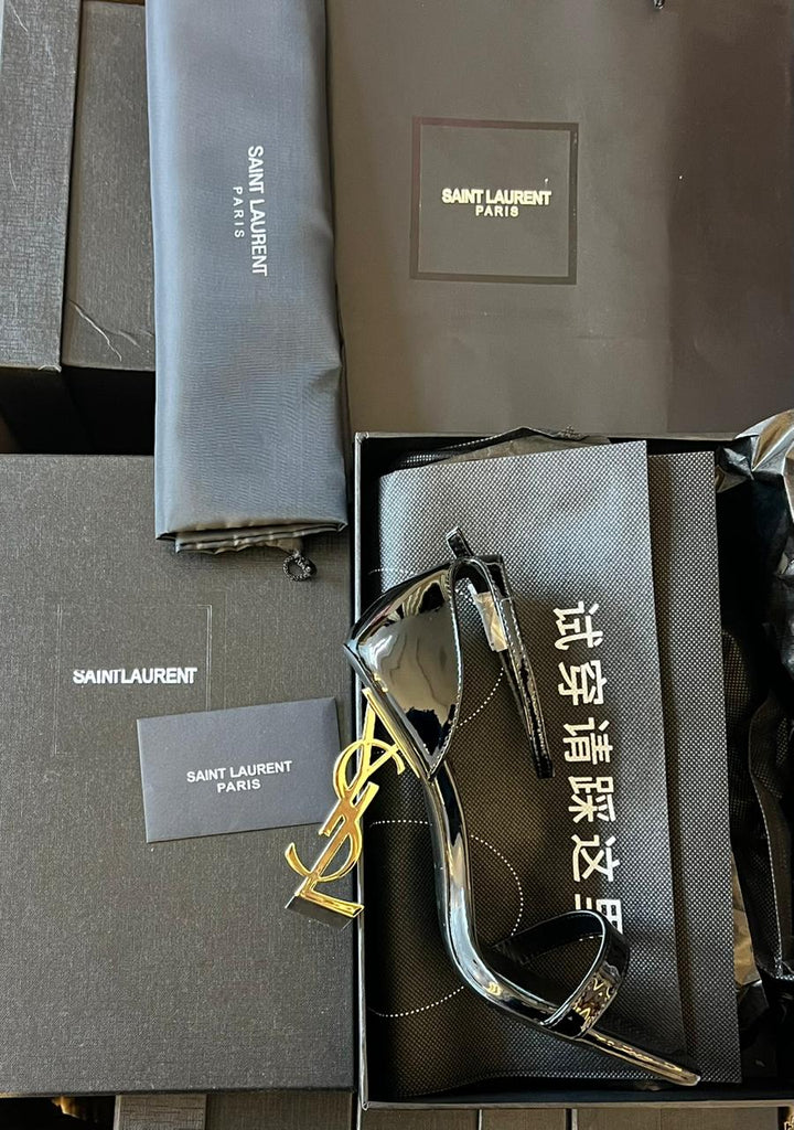 - Open toe with a thin toe strap and a slender buckle strap on the ankle