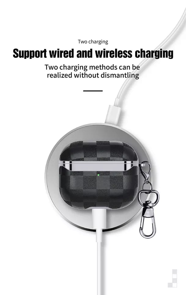 - AirPods Leather Case Cover with Front LED Visible. Wireless charging is available in the case. The bottom of the case has a cutout for convenient wired charging. This airpods case has a soft and anti-skid microfiber lining inside. Sleek and thin, but still reliable protection.