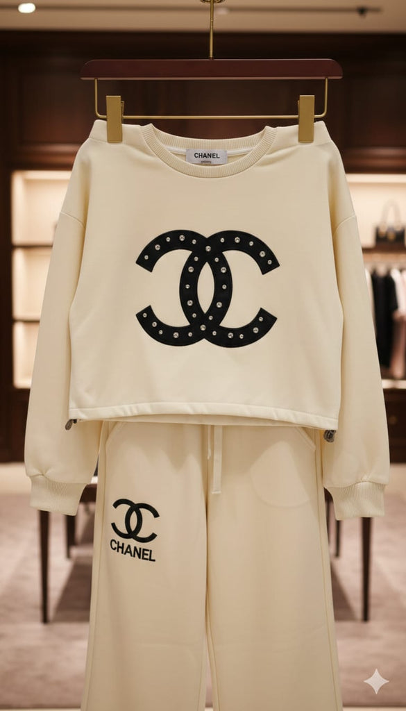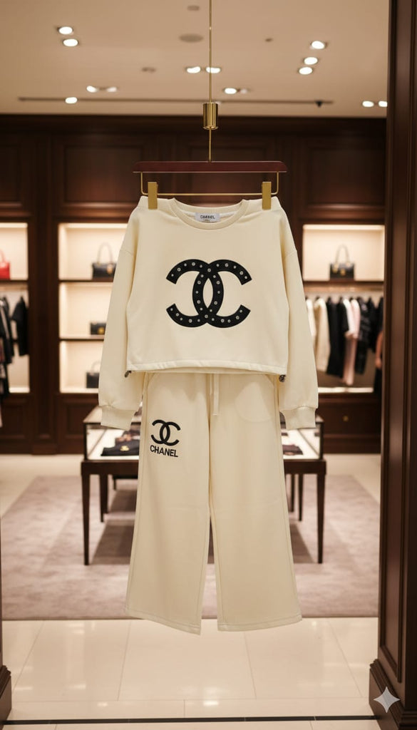 Kids Cream Co-Ord Set with Logo Print Cute & Comfortable Style