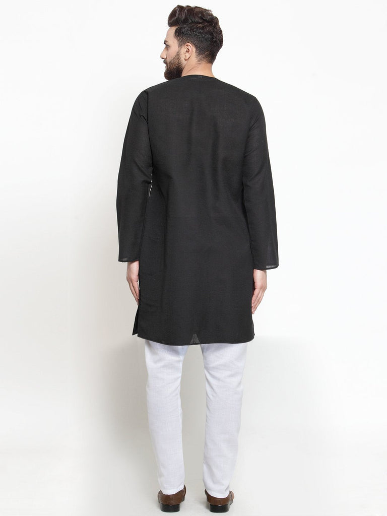 Designer Full Sleeve Black Kurta With Aligarh Pajama Set in Linen For Men by Luxury at Less