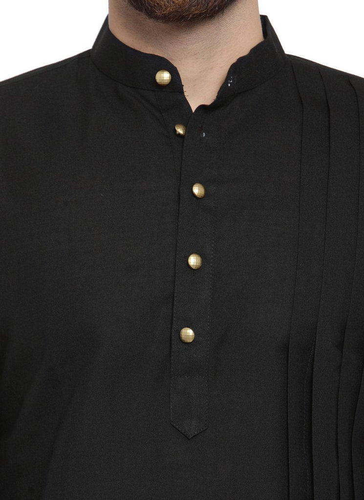 Black Kurta With Aligarh Pajama Set in Linen For Men by Luxury at Less