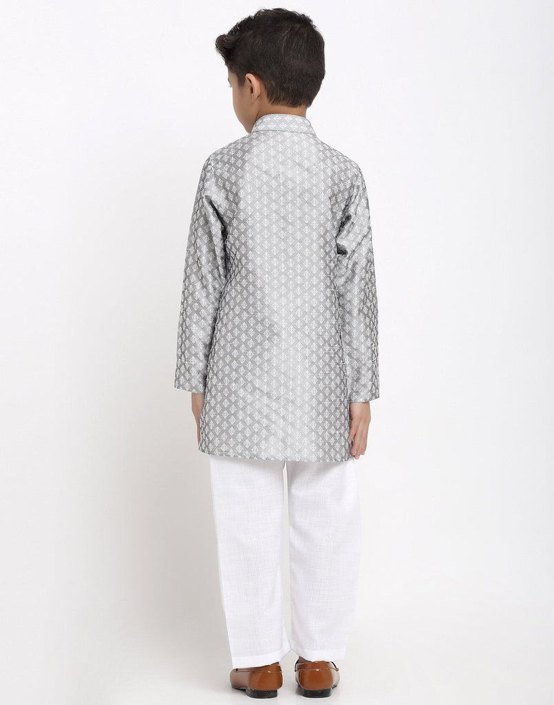 Brocade Kurta Pajama Set For Boys/Kids By Luxury at Less|Silver Grey| Kurta Pajama Set