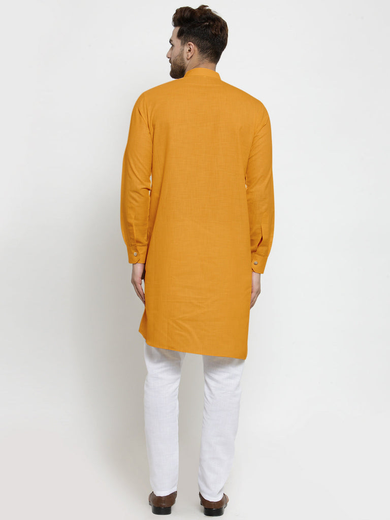 Luxury at Less brings to you this stylish Mustard Yellow kurta pajama for men in Linen Fabric, fully stitched and ready to wear.