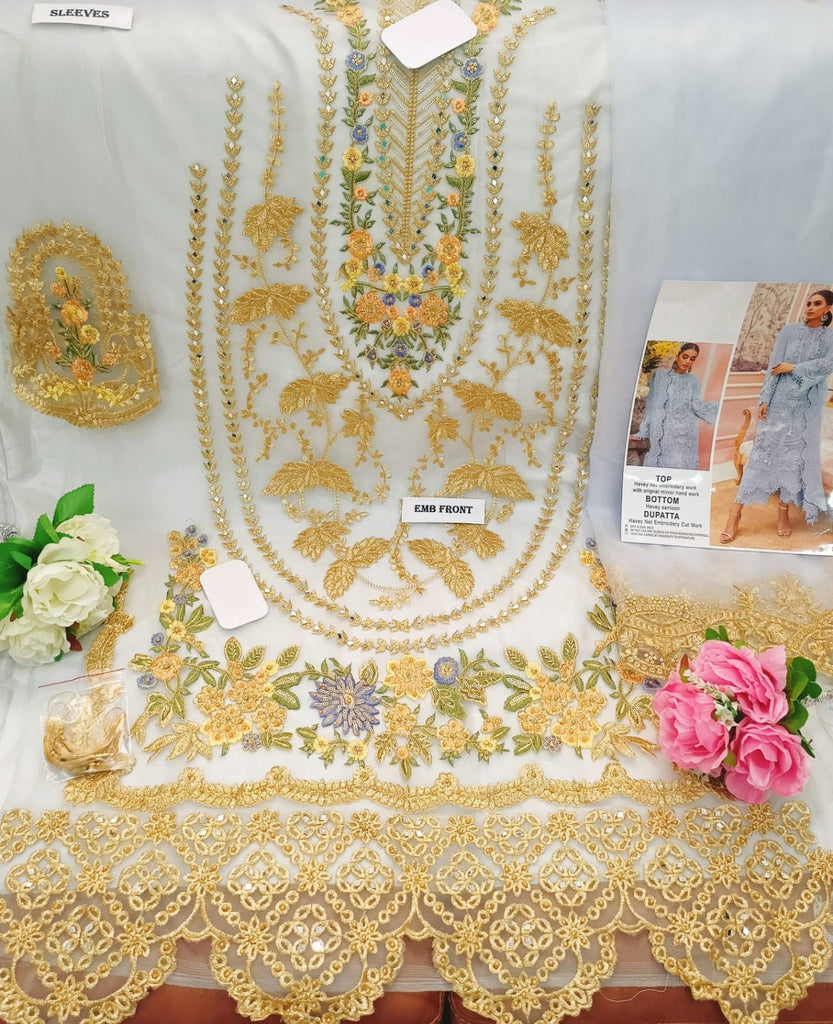 Top:- HEAVY NET EMBROIDERED WORK WITH ORIGINAL MIRROR HAND WORK