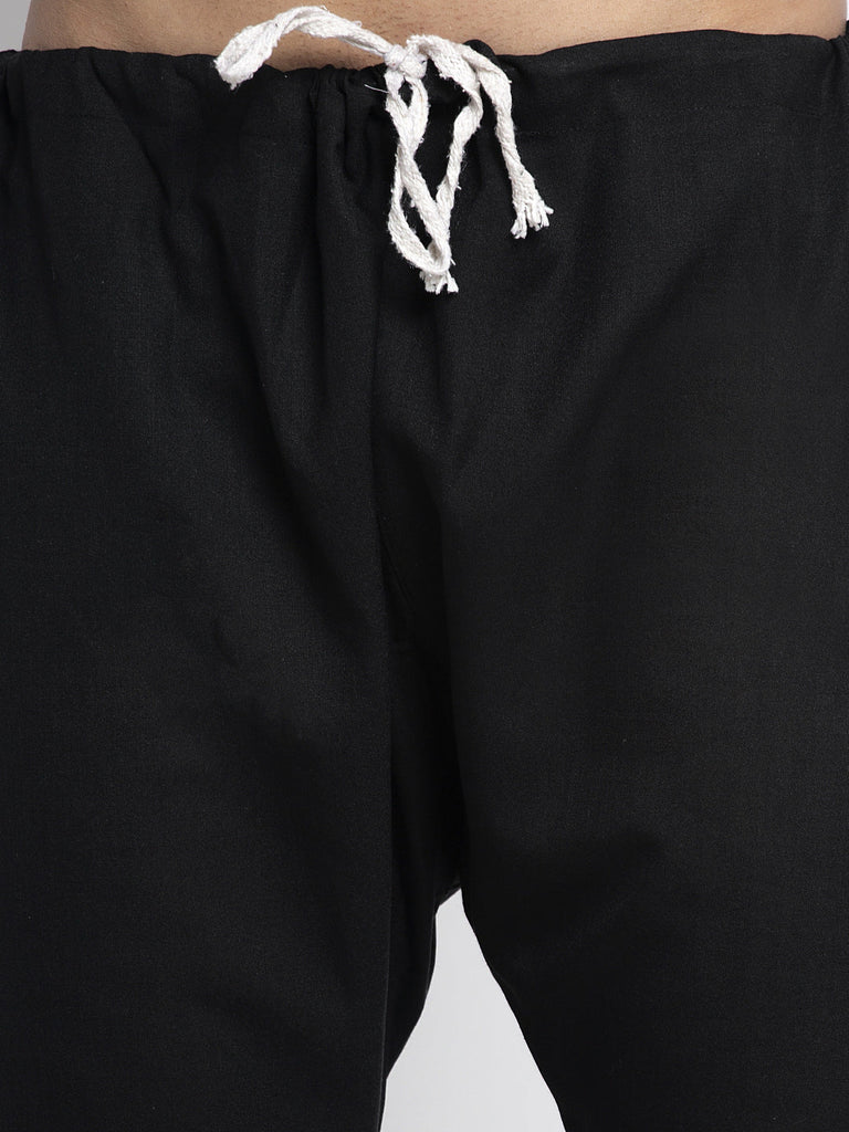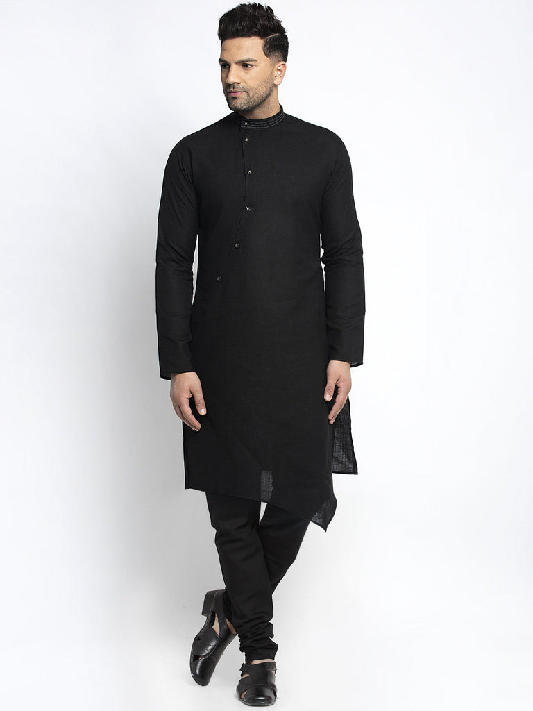 Designer Black Linen Kurta With Churidar Pajama Set For Men By Luxury at Less