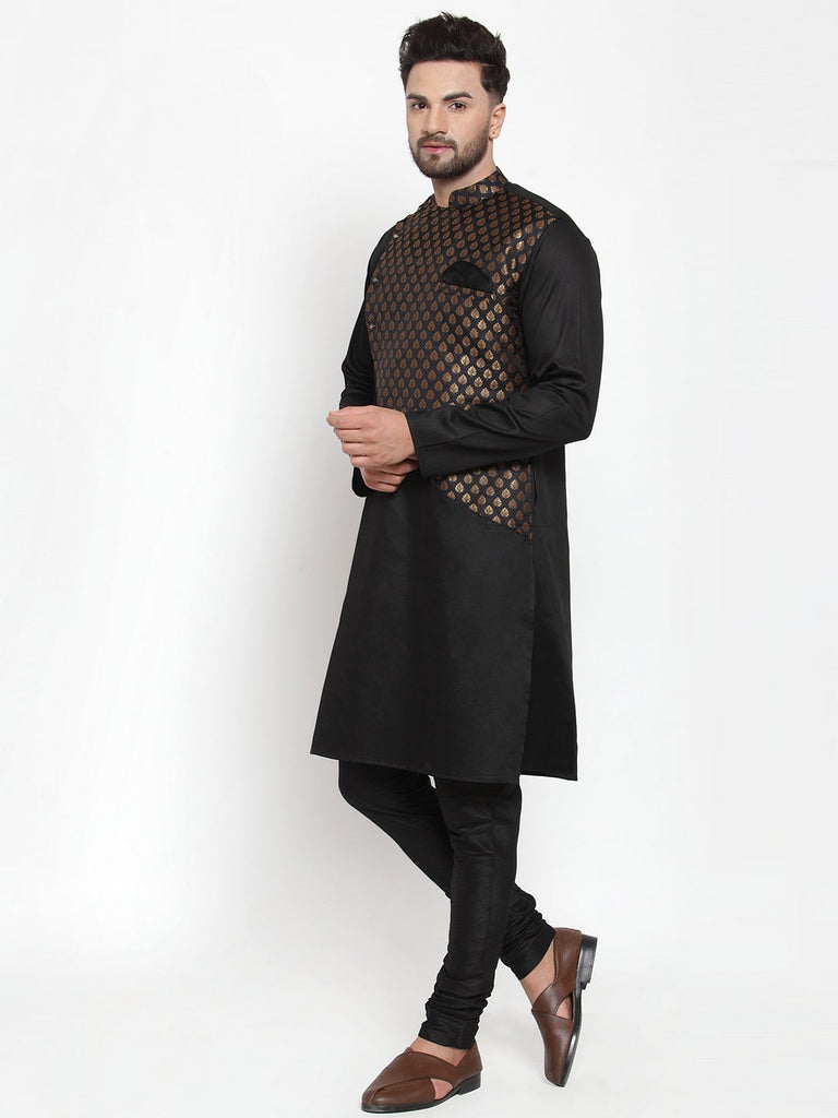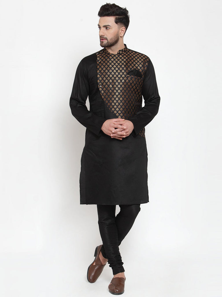 Designer Brocade Black Bnarsi Silk Kurta Pajama Set