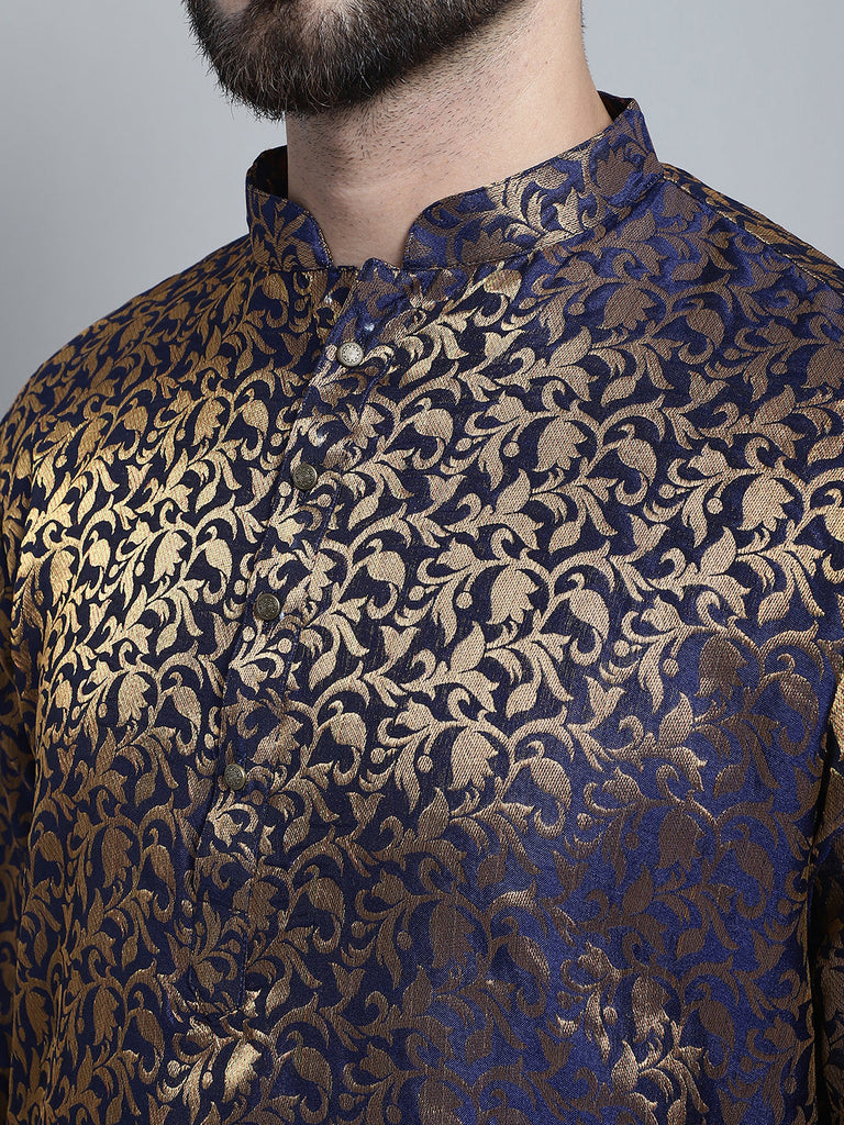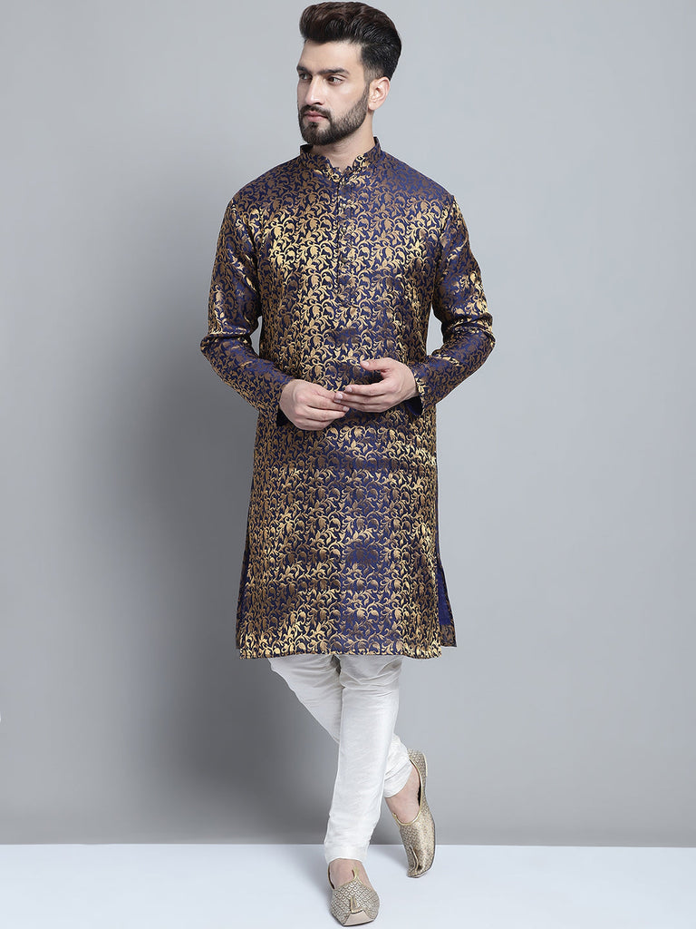 Designer Blue Brocade Kurta Pajama Set by Luxury at Less