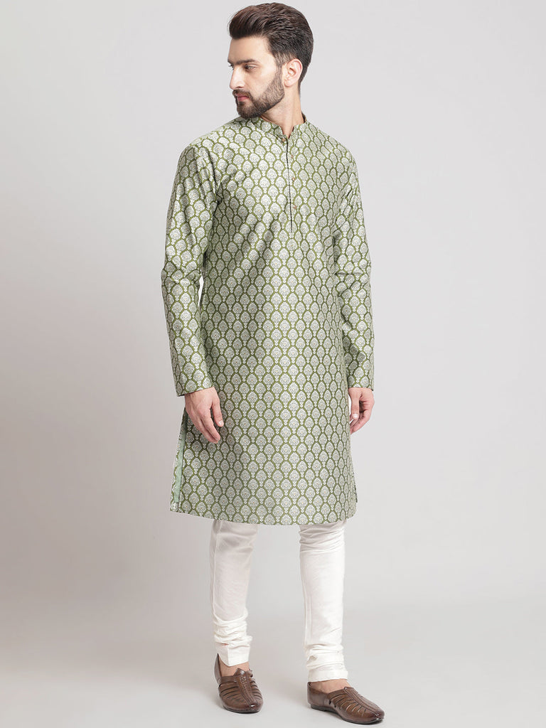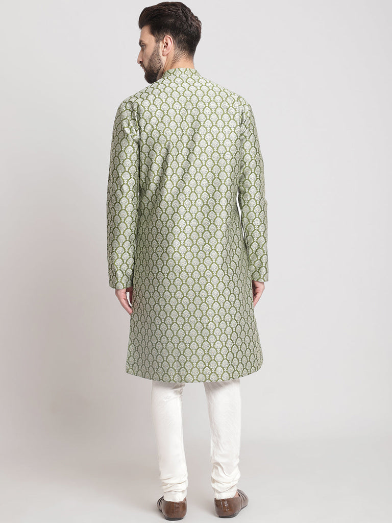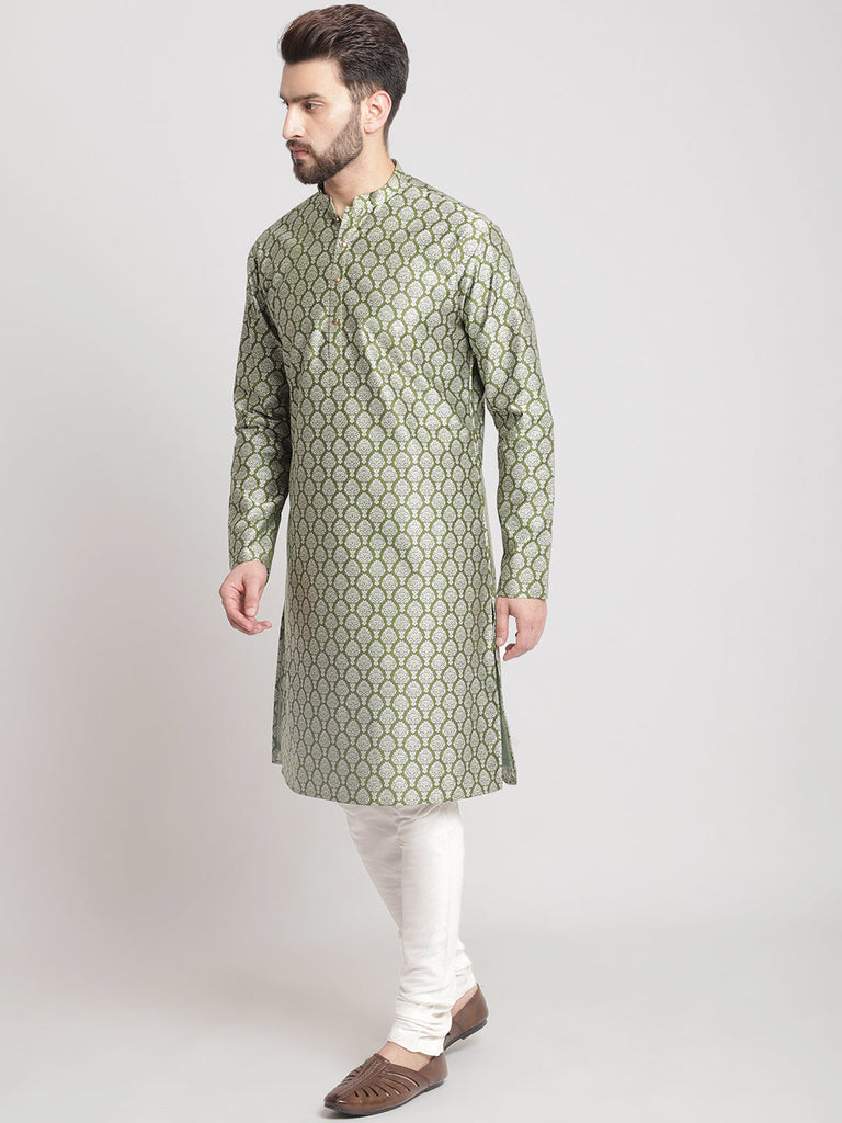 Designer Golden Green Brocade Silk Kurta With Churidar Pajama By Luxury at Less