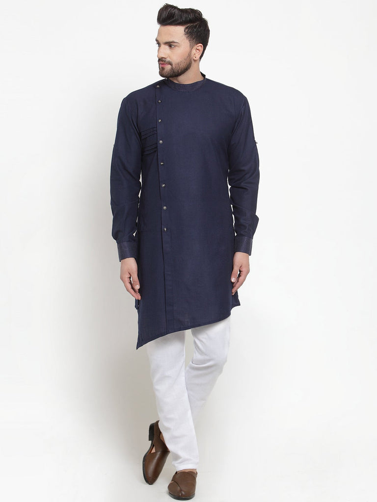 Straight kurta With Pajama, has a Mandarin-Neck collar, long sleeves, rich linen blend,You Can Wear For Everyday Or Special Occasions.
