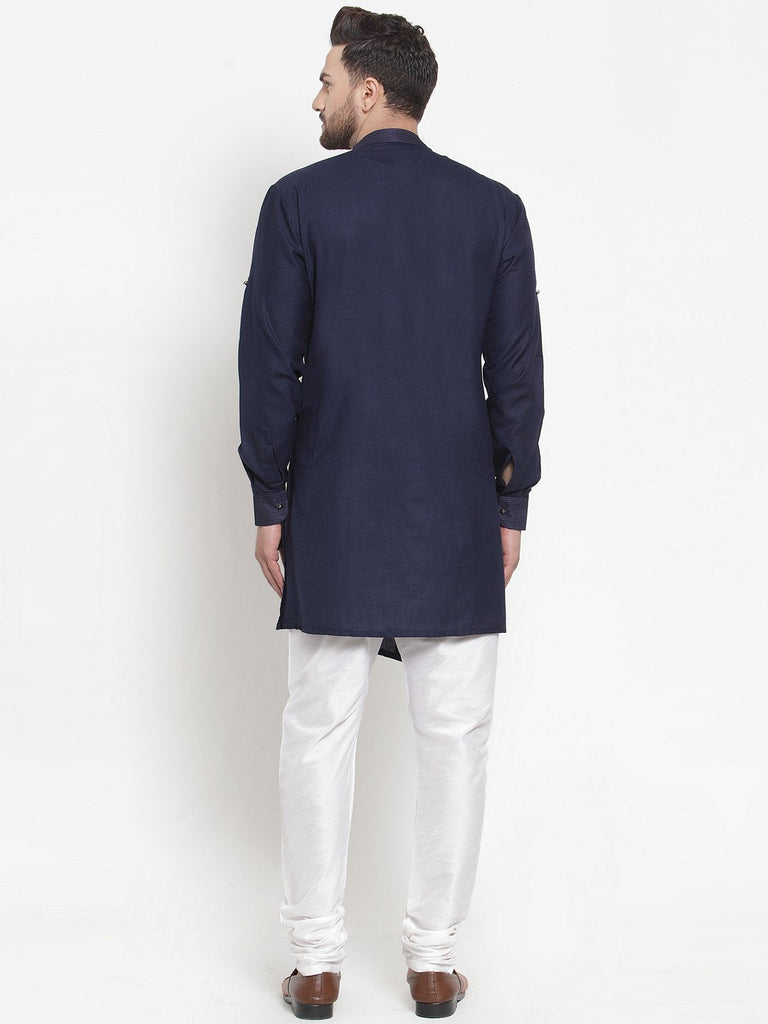 Designer Navy Blue Kurta With Churidar Set in Linen For Men by Luxury at Less