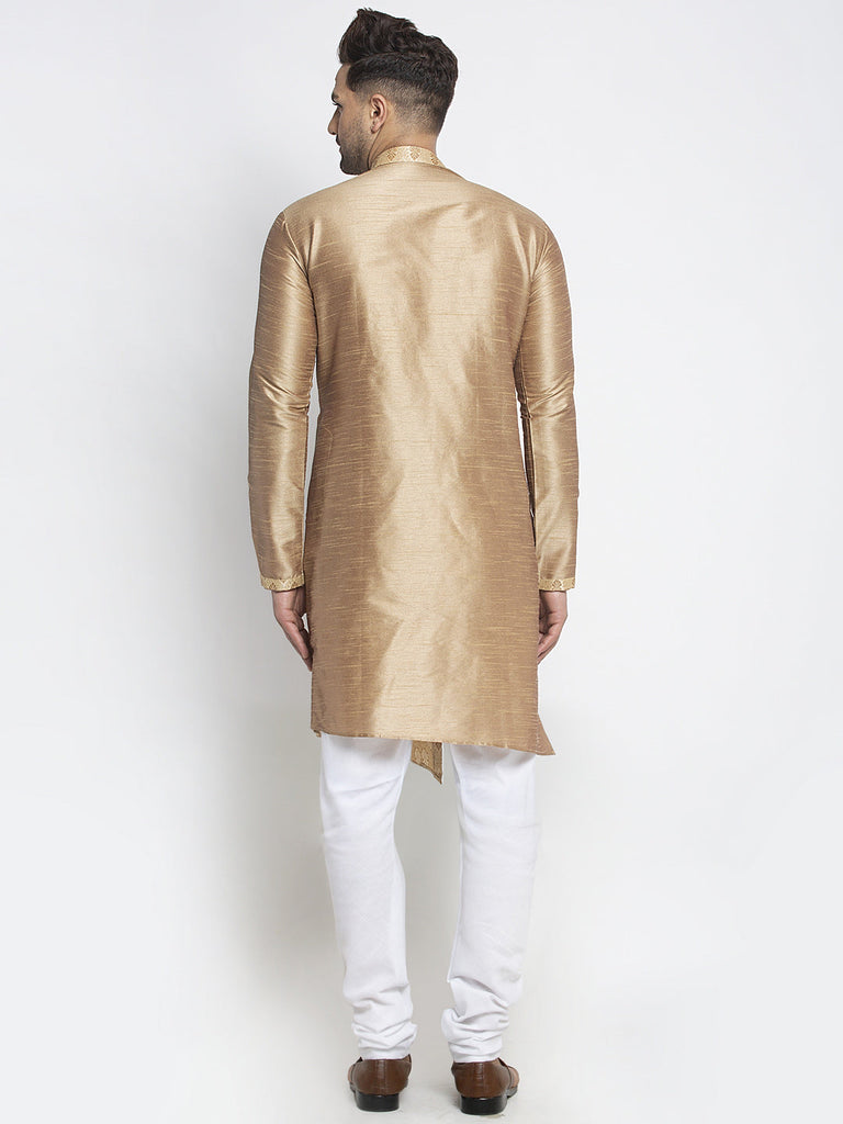 Embellished Brocade Golden Kurta With Churidar Pajama Set For Men By Luxury at Less