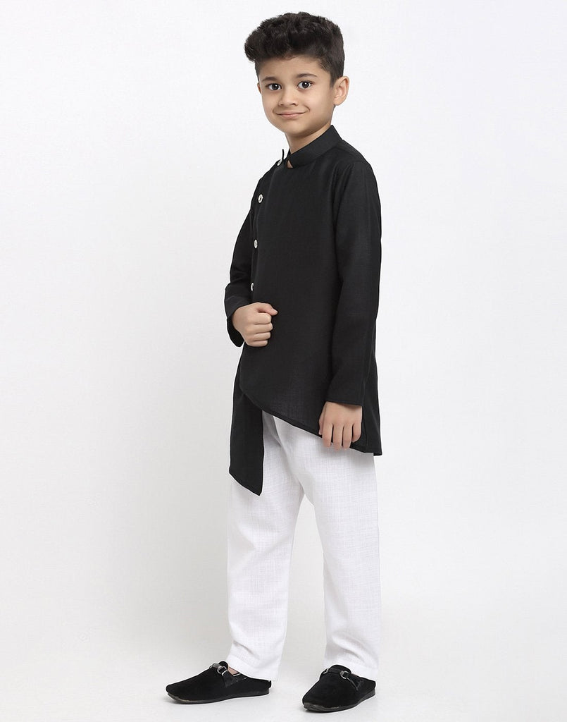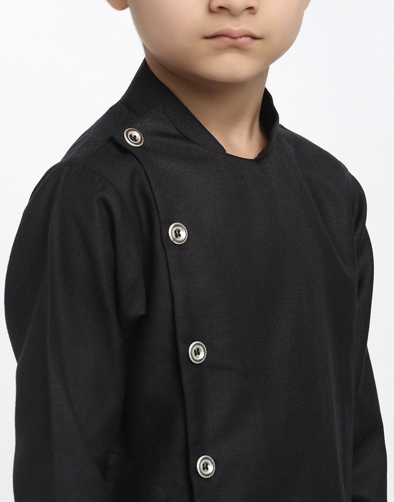 Linen Designer Kurta Pajama Set For Boys/Kids By Luxury at Less|Black| Kurta Pajama Set