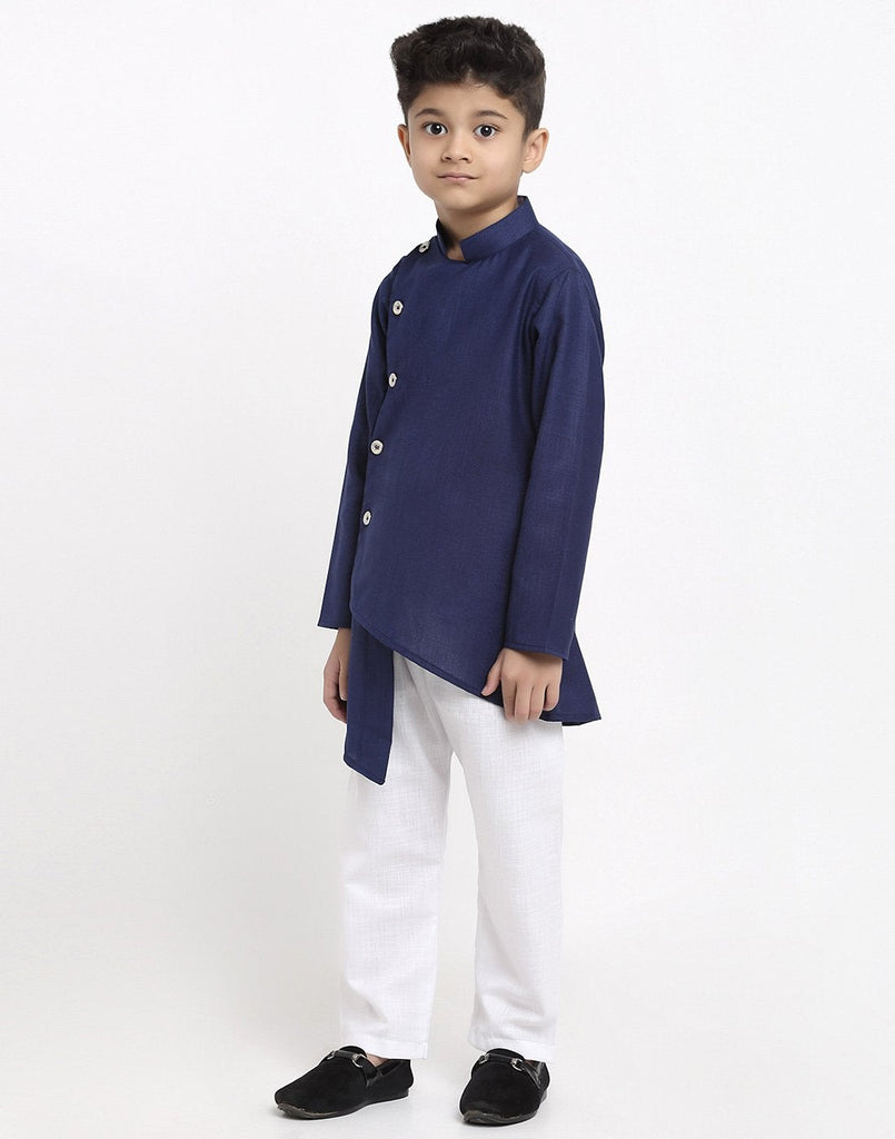 Linen Designer Kurta Pajama Set For Boys/Kids By Luxury at Less|Navy Blue| Kurta Pajama Set