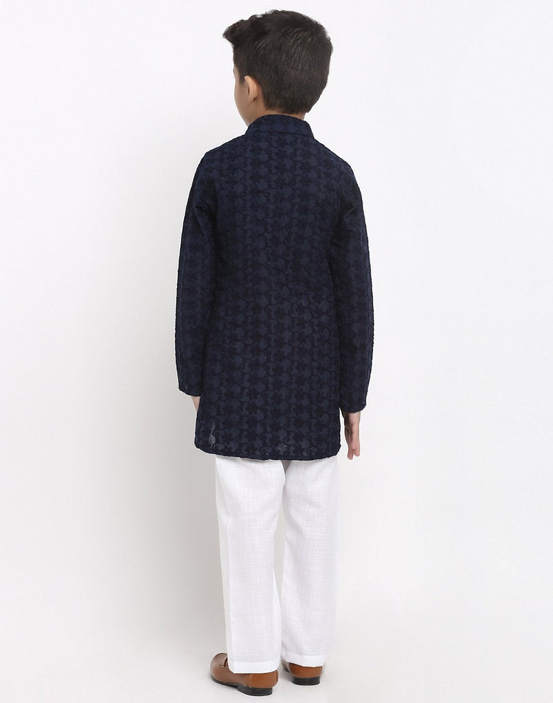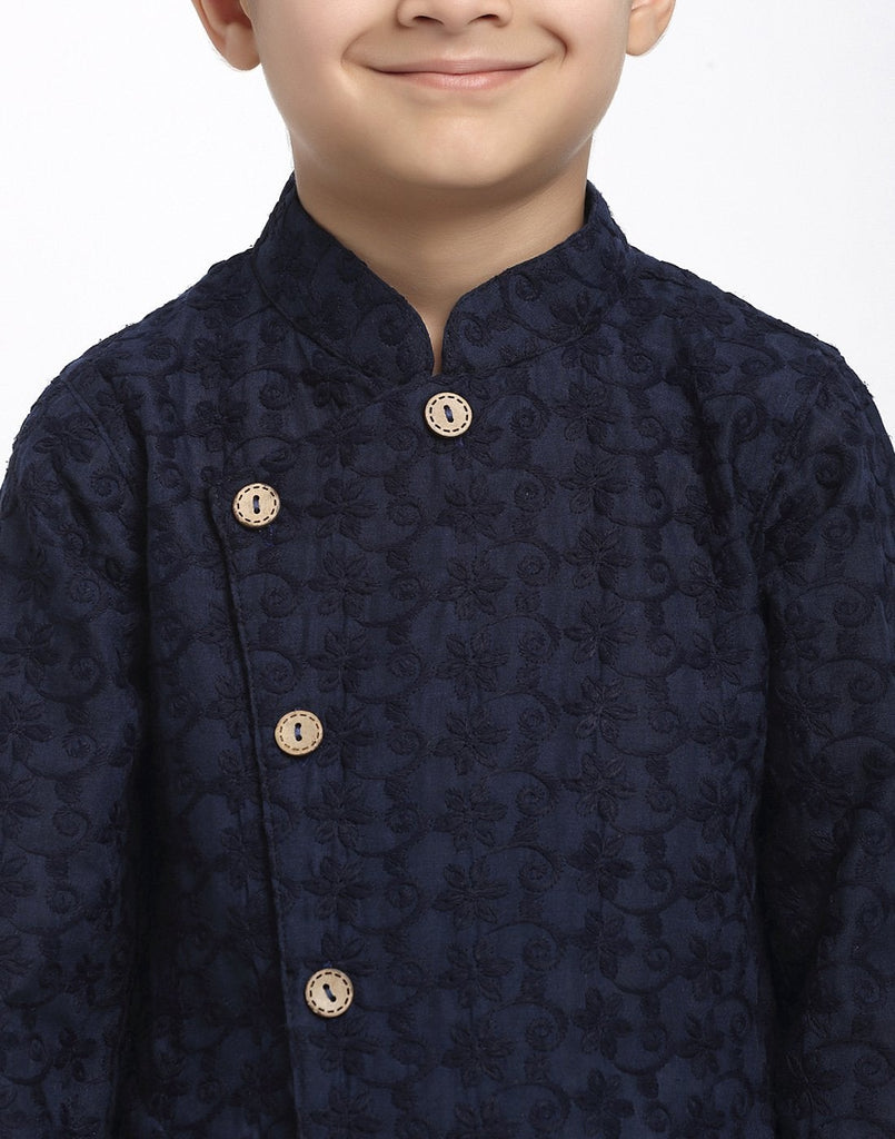 Lucknowi Chikankari Cotton Kurta Pajama Set For Boys/Kids By Luxury at Less|Navy Blue| Kurta Pajama Set