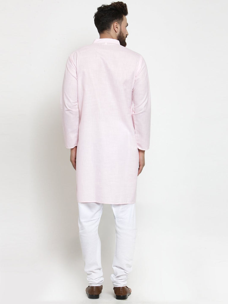 Pink Kurta With Churidar Pajama Set in Linen For Men by Luxury at Less