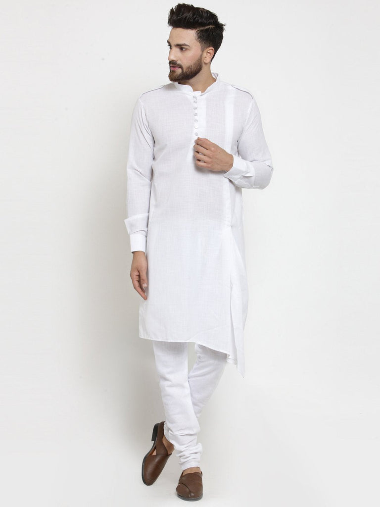 Make your occasion special with latest in trend White solid Designer Kurta Pajama set which has mandarin collar long sleeves, Asymmetric Hem and Front Slit. Explore the wide range of Finest Quality Lenin Kurta Pajama for Men by Luxury at Less. Check out the entire Ethnic Collection for Men by Luxury at Less Online.