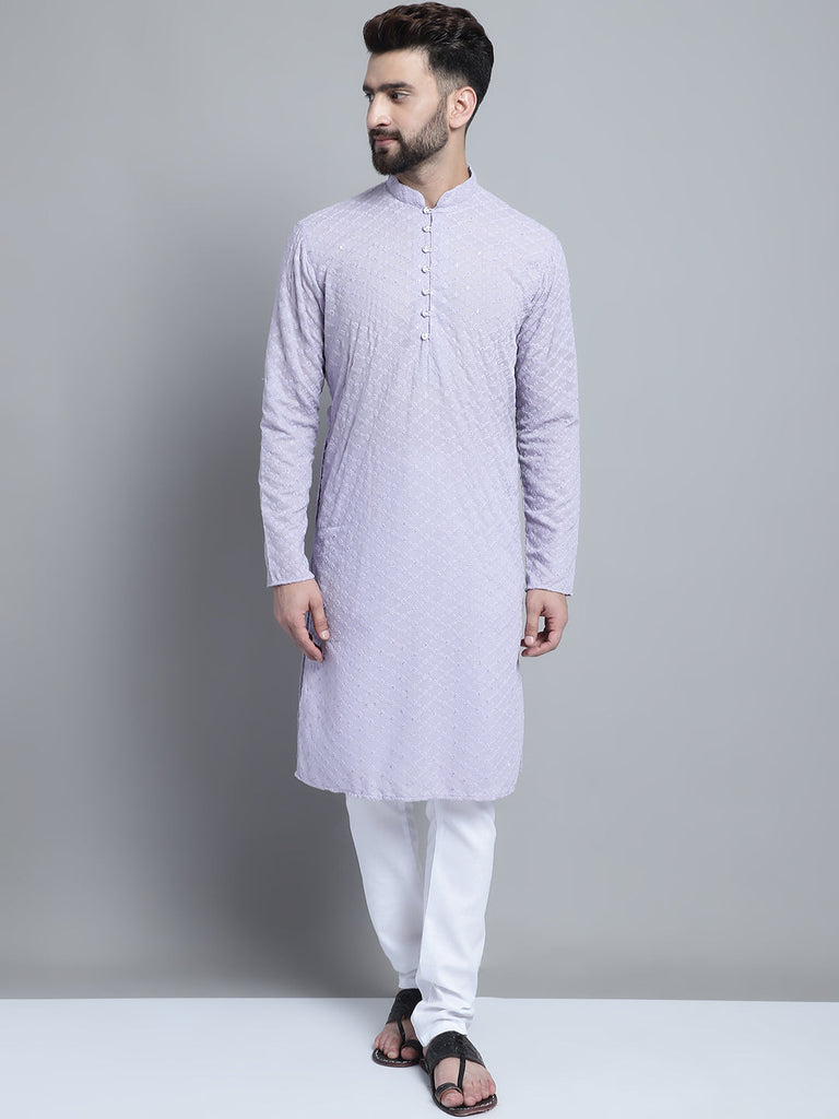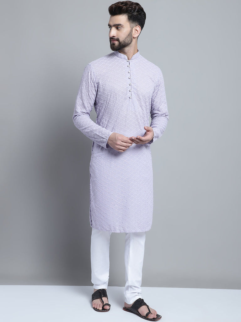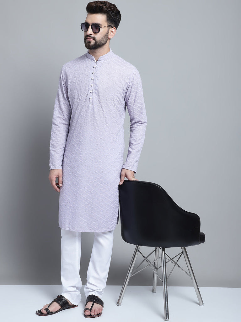 Lavender Chikankari Embroidery Cotton Kurta Pajama by Luxury at Less