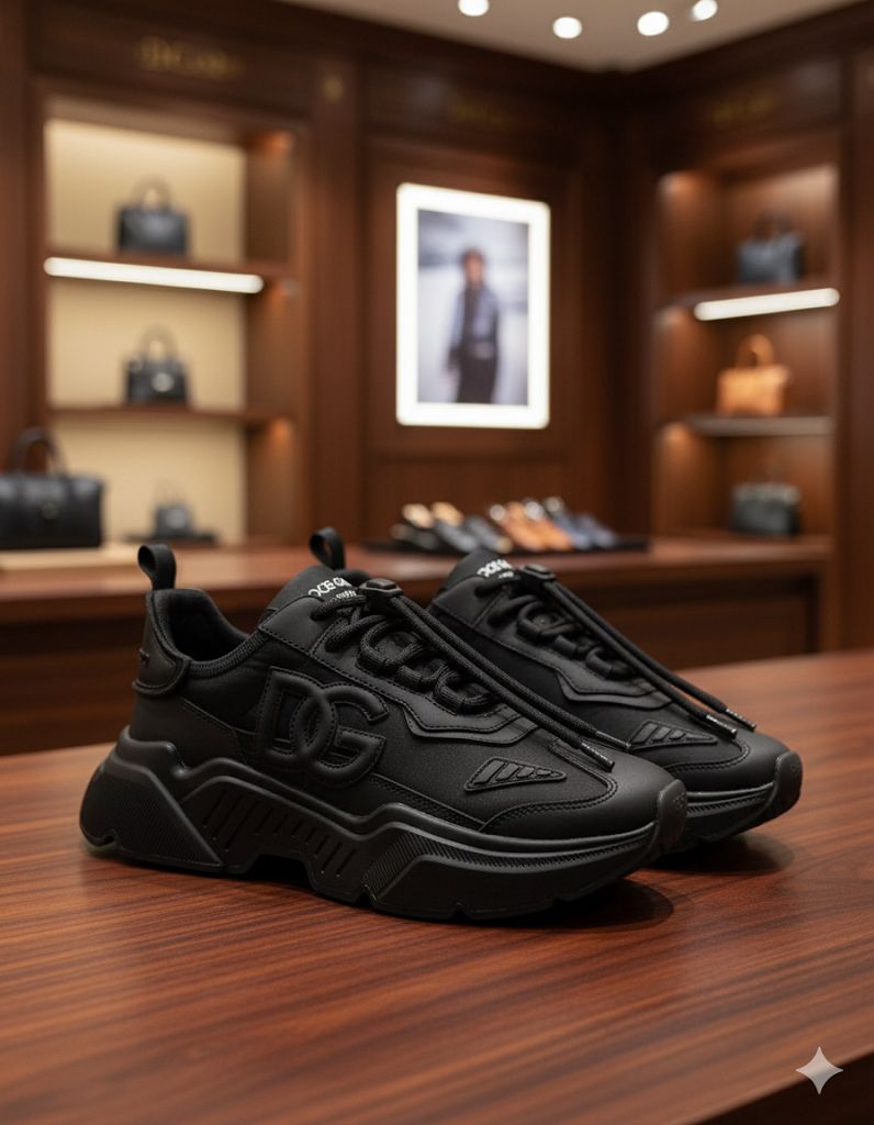 Step into the world of modern fashion with these luxury imported sneakers, designed for those who value premium craftsmanship and bold aesthetics. These all-black chunky sneakers redefine comfort and style, making them the perfect choice for trendsetters who love a statement look.