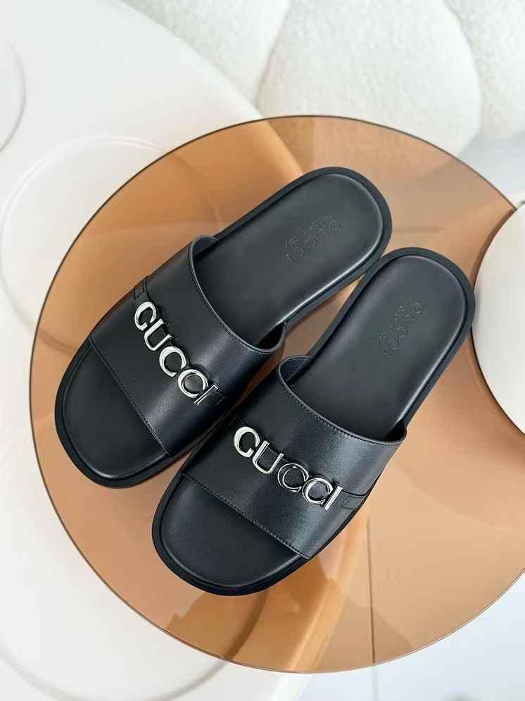 Men’s Luxury Black Leather Slides  Iconic Comfort and Style