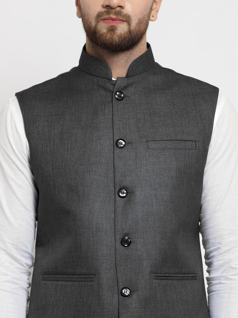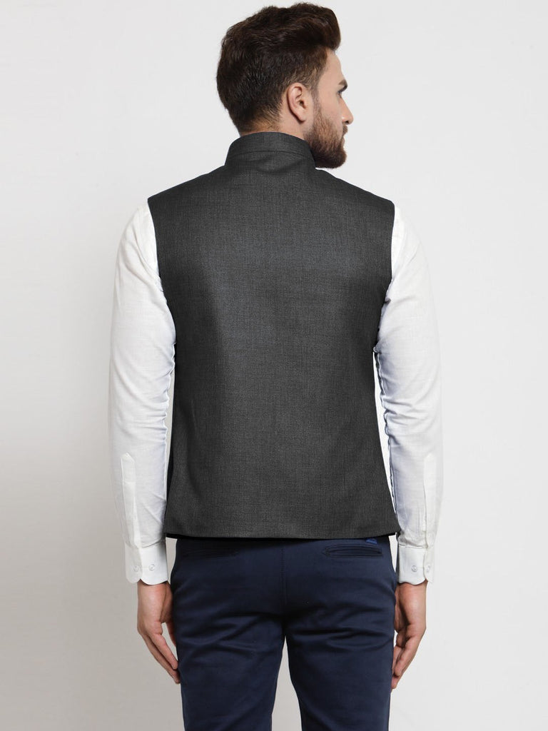 Men Grey Solid Nehru Jacket By Luxury at Less