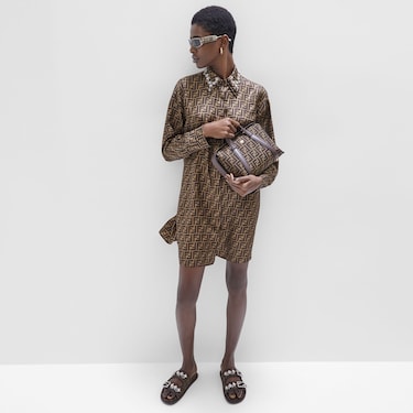 - Metal purse feet and Fendi Roma logo, gold-finish metalware.