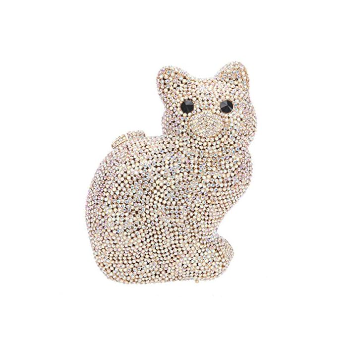 Cute 3D Cat Shape Crystal Evening Clutch Bag