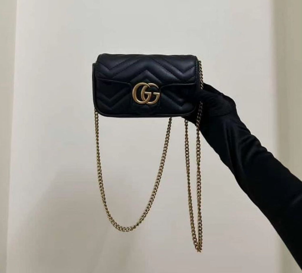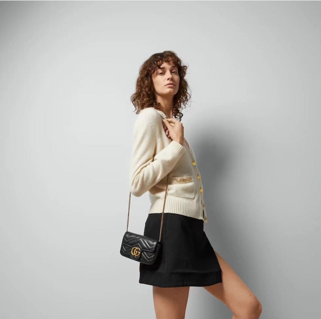 The GG Marmont mini bag has a key ring that can be used to attach it to a separate larger bag. It has a softly structured shape and a flap closure with Double G hardware.
