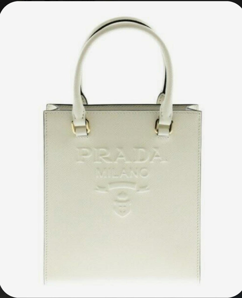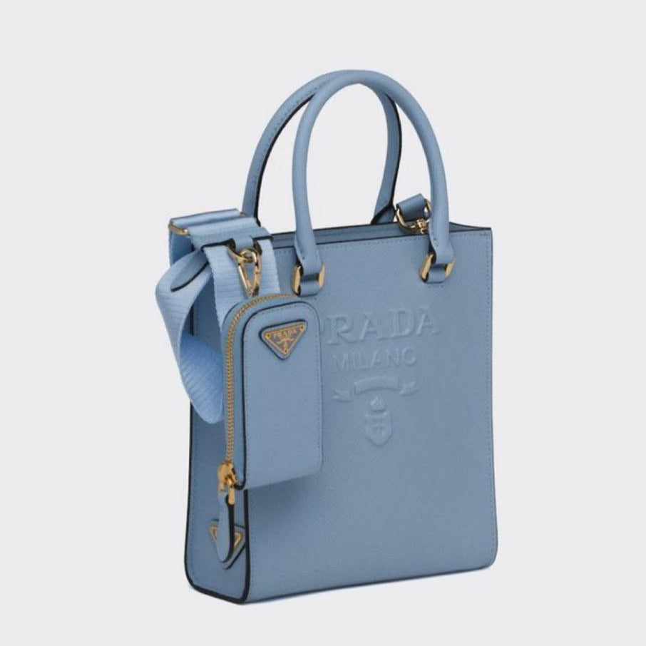 Black Leather Small Saffiano Leather Tote Bag. Featuring Embossed Logo To The Front, Enamel Triangle Logo, Adjustable Detachable Shoulder Strap, Two Rounded Top Handles, Removable Pouch And Internal Patch Pocket.