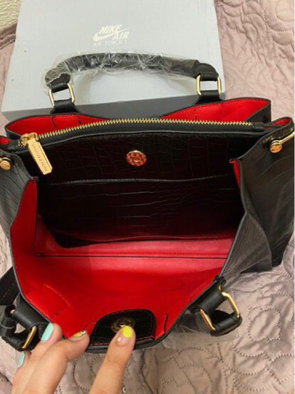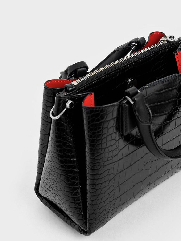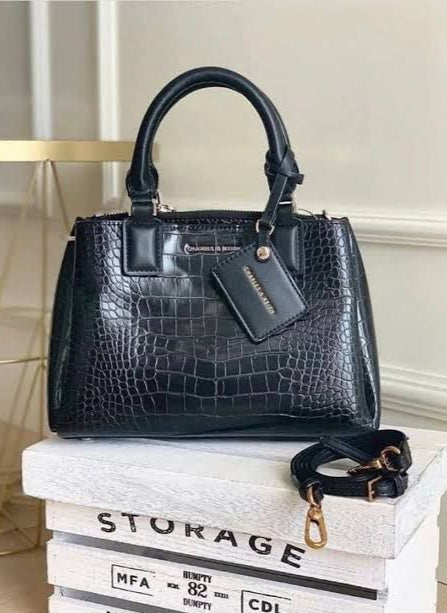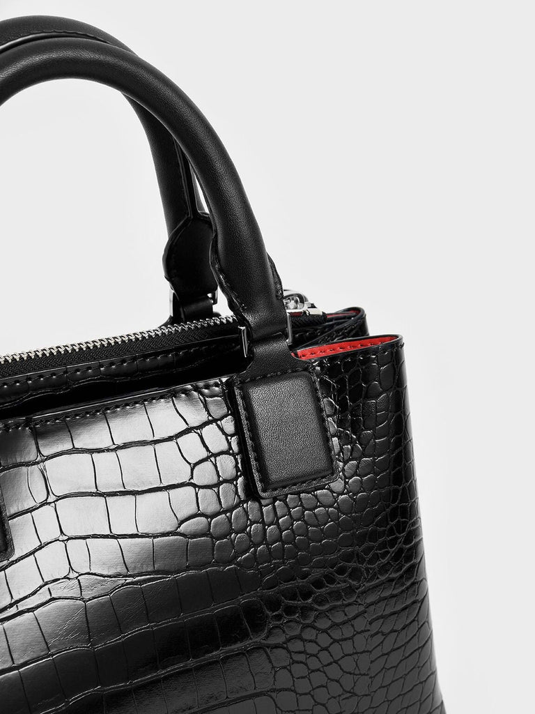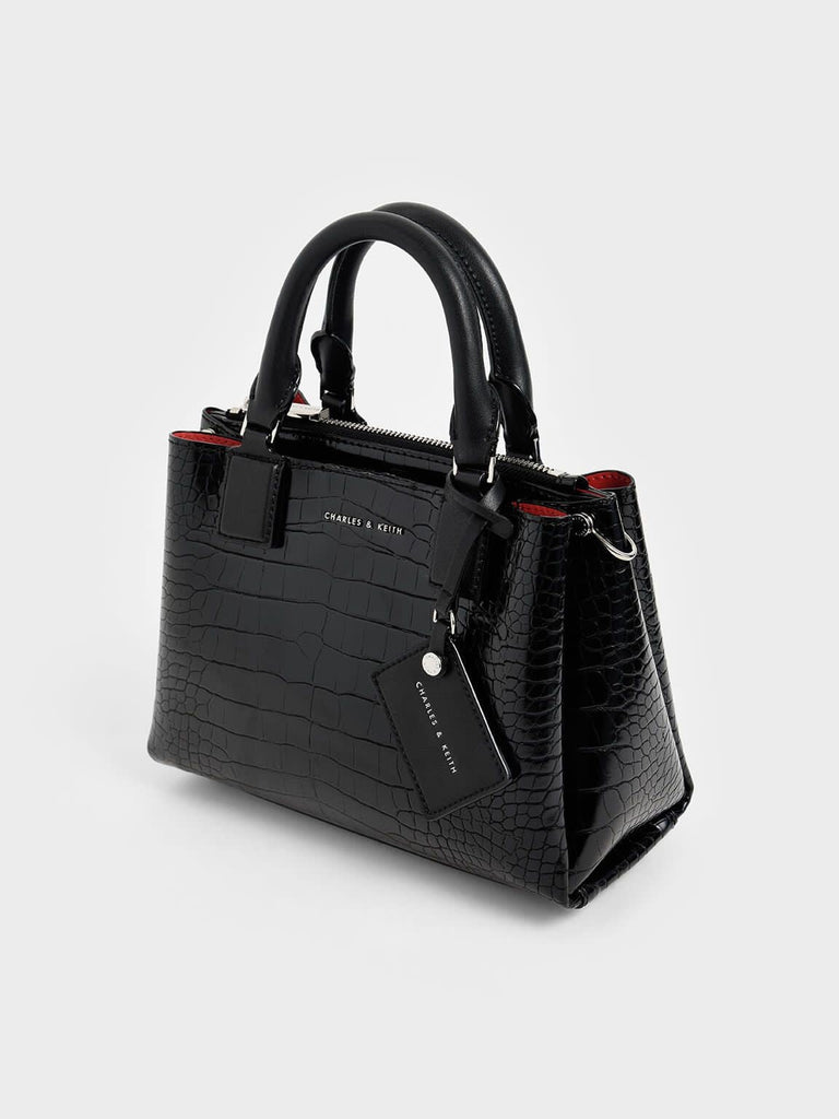 Made with the fashionable working woman in mind, this black mock croc bag ticks off two trends in one: functional and stylish. Goes perfectly with a white jumpsuit.