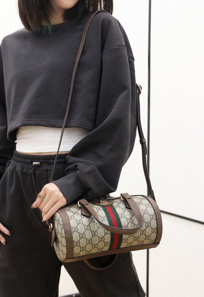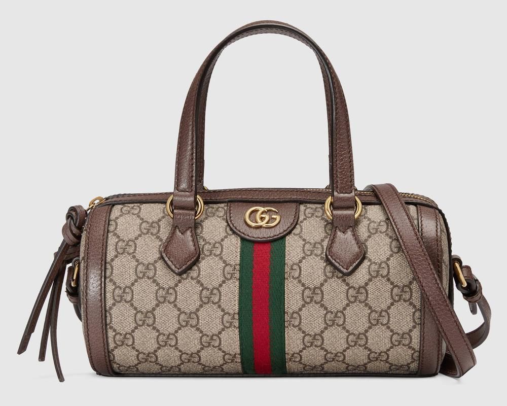 Ophidia, a line of bags that debuted on the catwalk at the Pitti Palace in Florence, features the iconic inlayed Web detail and a shiny gold Marmont tab.