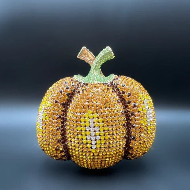 Stunning pumpkin shaped crystal clutch comes with a hidden shoulder chain. The Crystal attached on the bag is giving it more of a fairy tail feel, shaped in pumpkin.