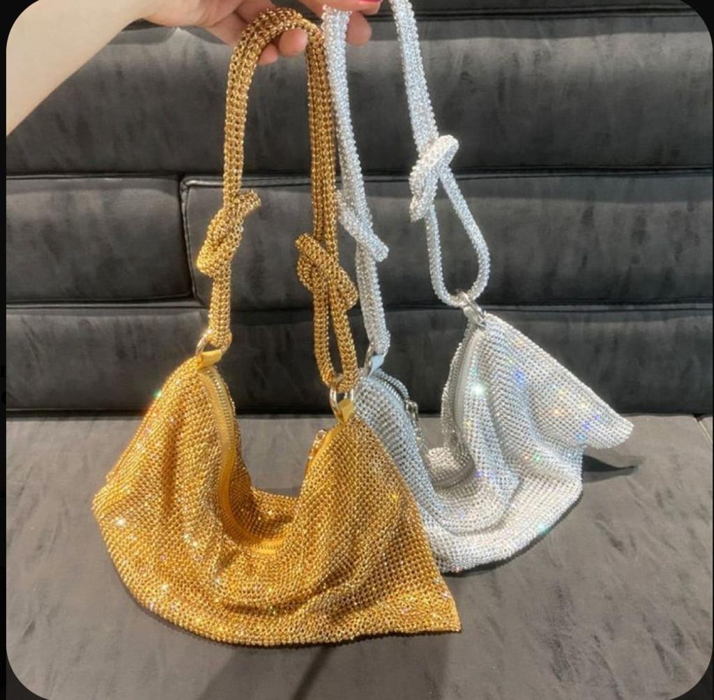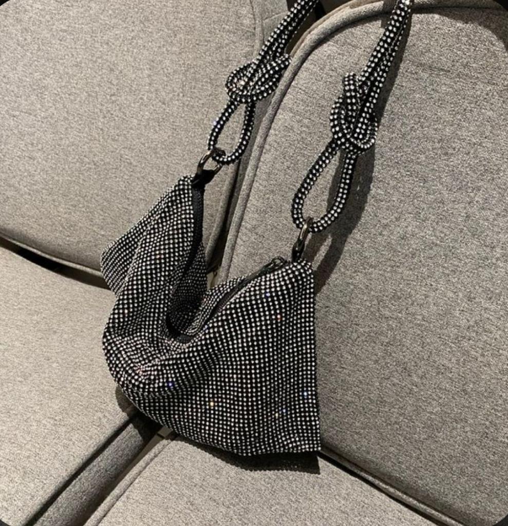 Blinged out rhinestone handbag, with double handle strap. Wear casually for everyday flair or special events. luxury Designer hobo shoulder bag Handle Shining Rhinestones Evening clutch Bag.