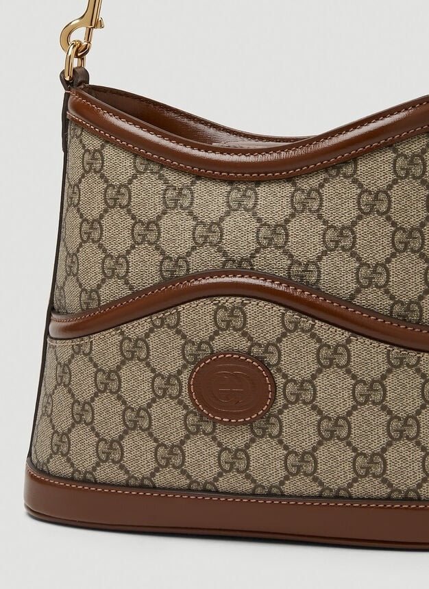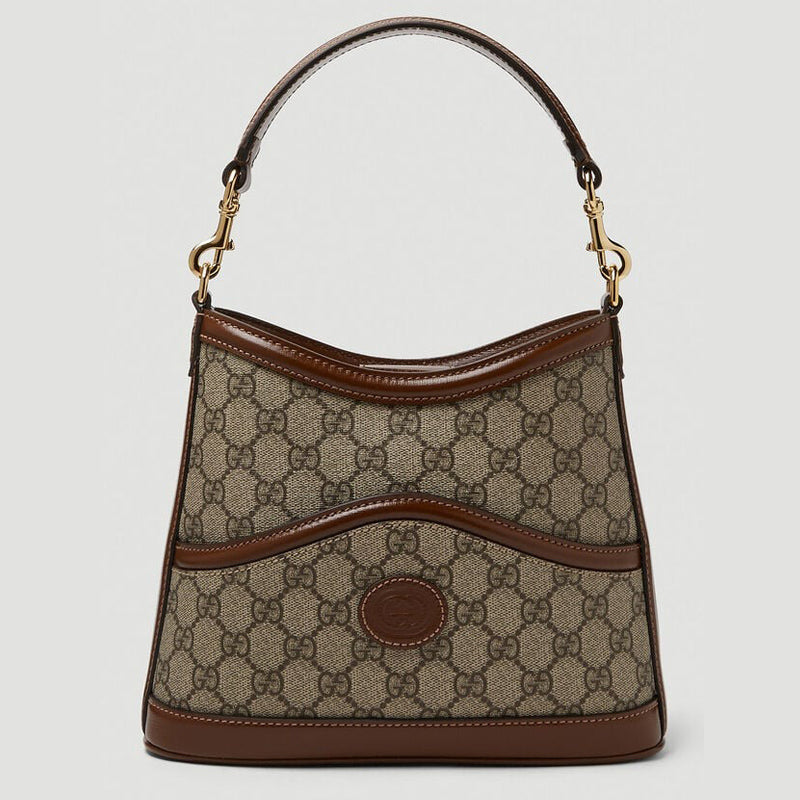 Brand signature tropes – playful detailing and bold motifs– are evident in this season’s accessories. The interlocking bucket Shoulder Bag is crafted from a technical blend fabrication in a canvas weave,