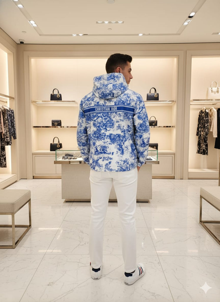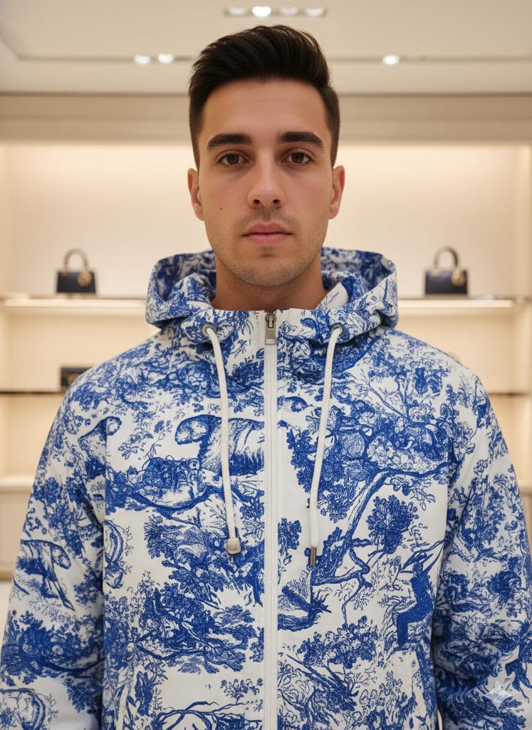 - Brand signature blue scenic pattern inspired by French craftsmanship.