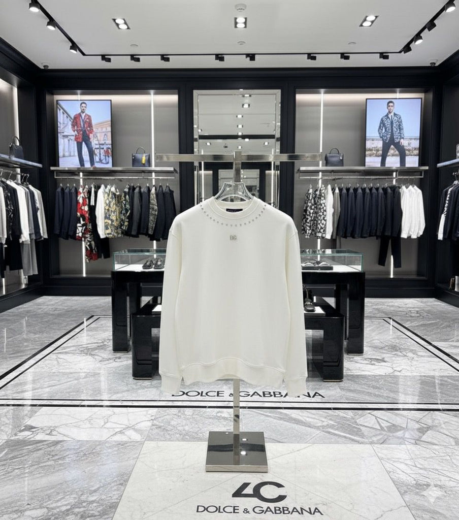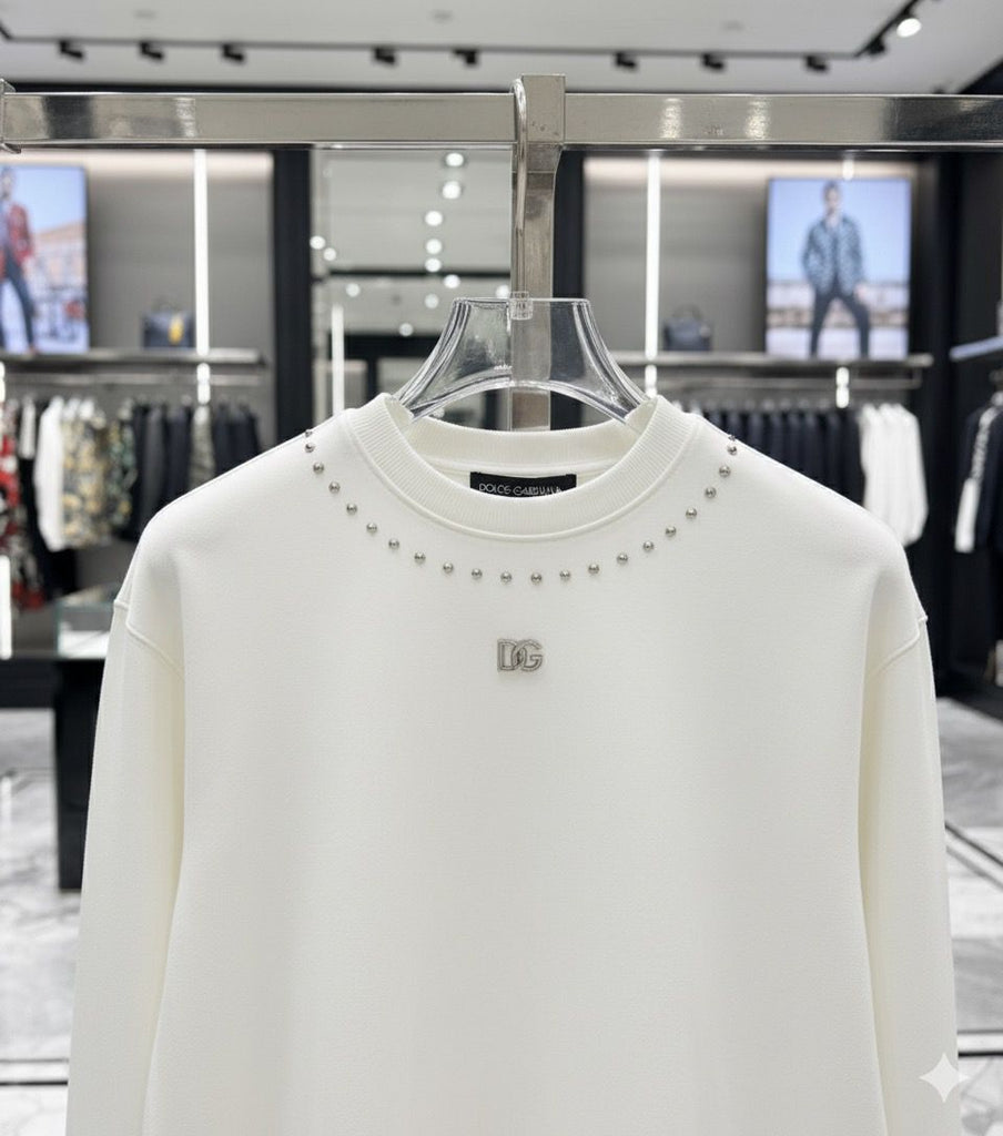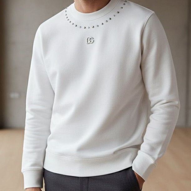 White Luxury Sweatshirt with Metal Logo Detail
