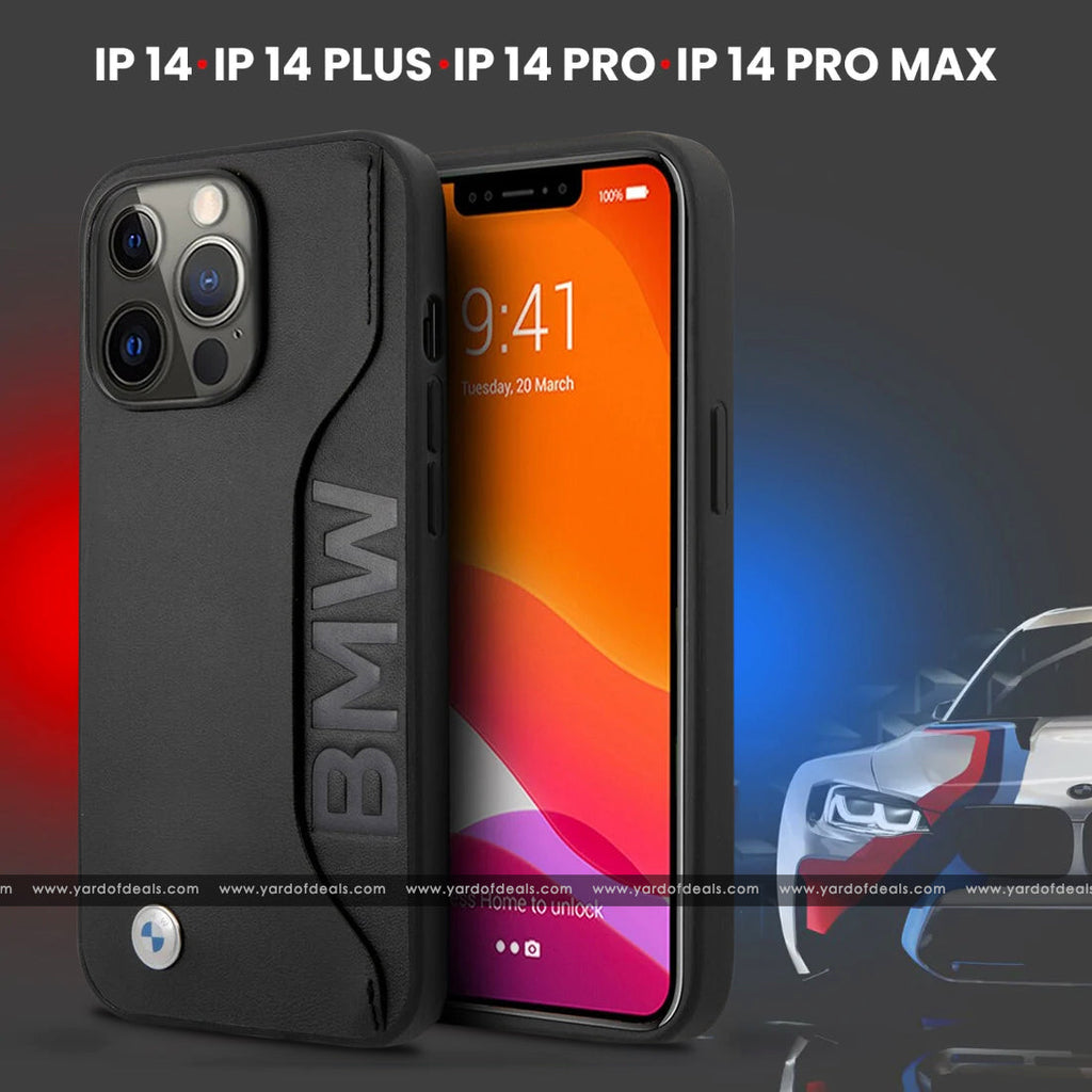 BMW HC Leather Wordmark Card Slot Black Case for iPhone 14 Series