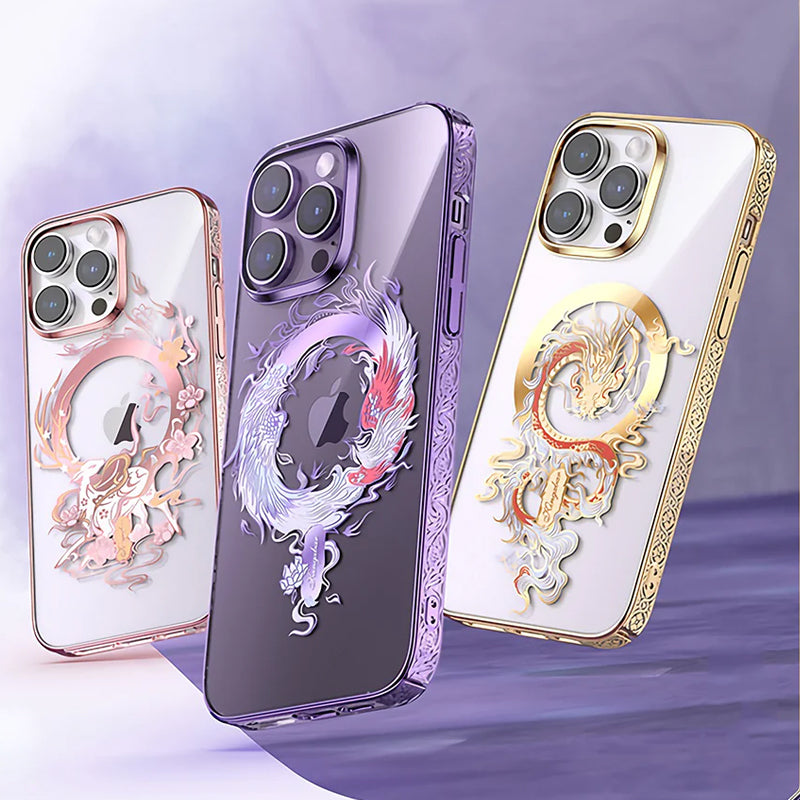 Luxury Magnetic Magsafe Dragon, Phoenix, Deer Case for iPhone 14 Series