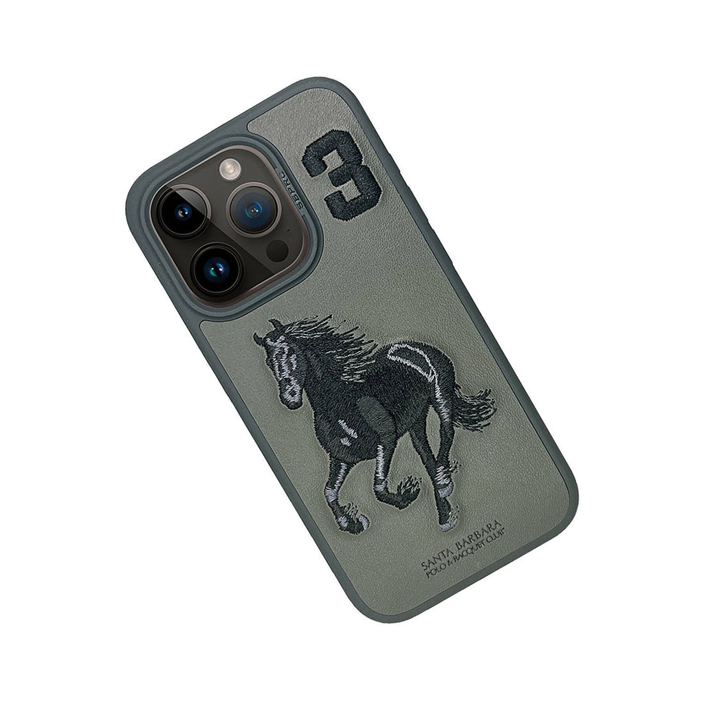 Santa Barbara Boris Series Embroided Horse Leather Case for iPhone 15 Series