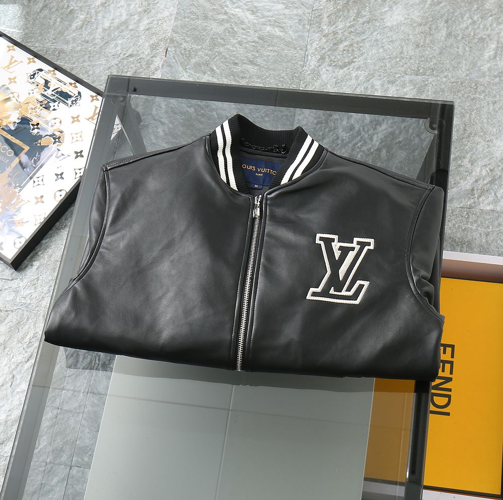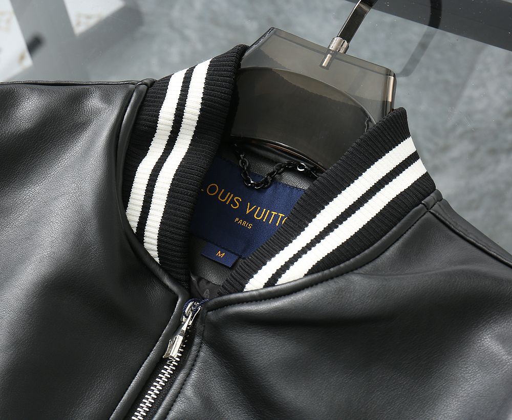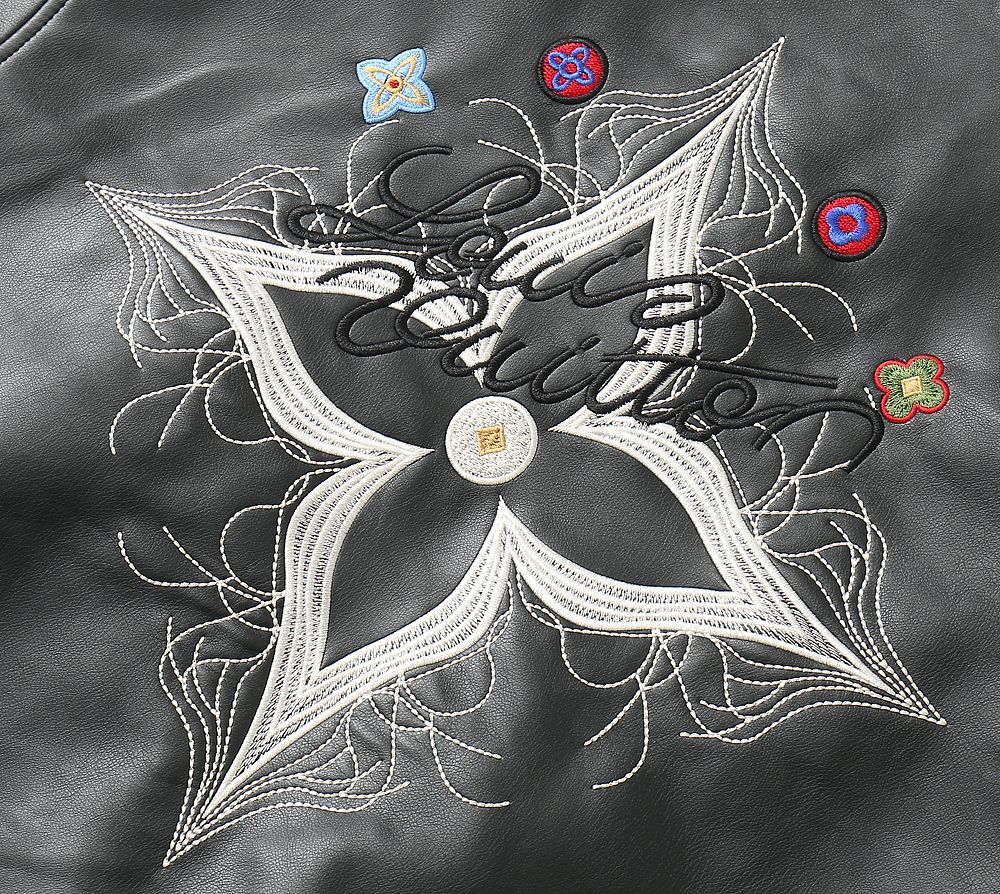 Luxury Black Leather Varsity Jacket with Embroidered Detailing