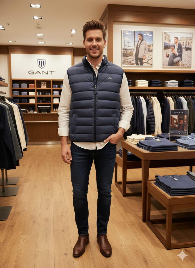 Men’s Blue Puffer Vest Lightweight, Warm & Stylish