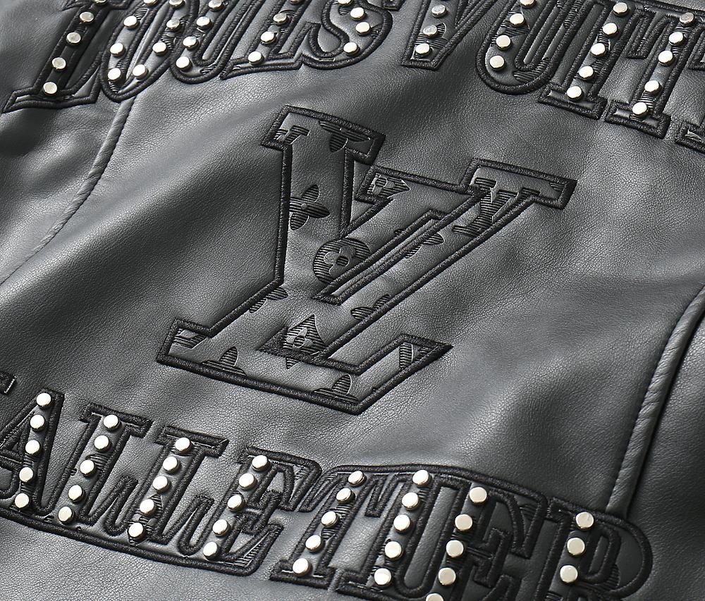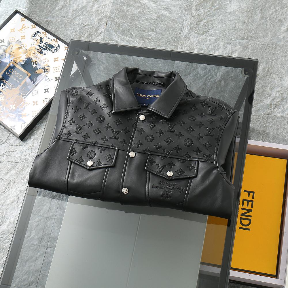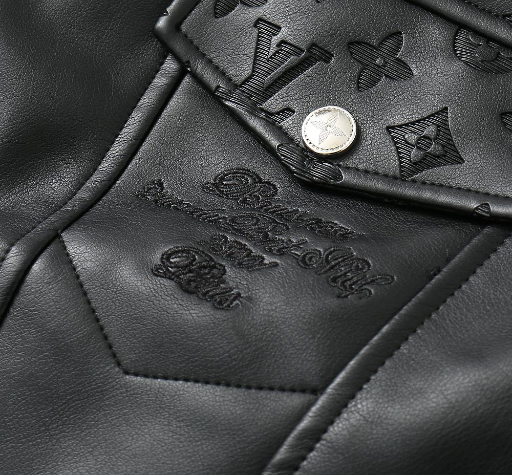 Premium Black Leather Jacket with Signature Monogram Design