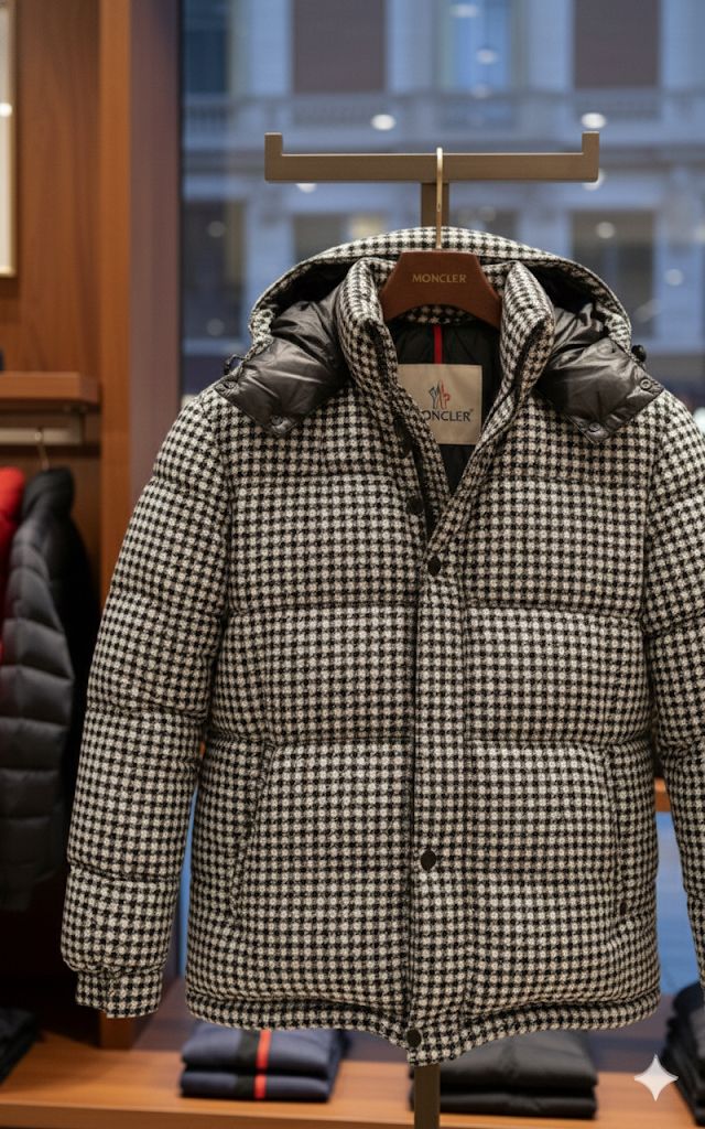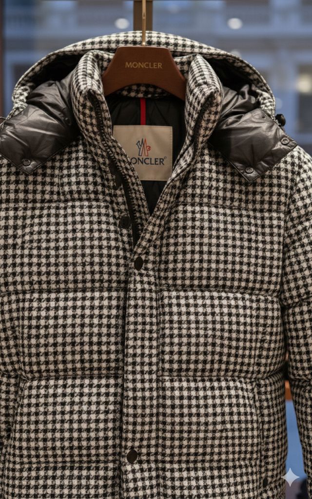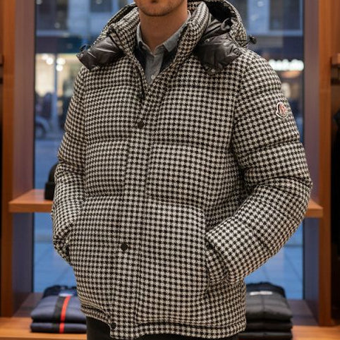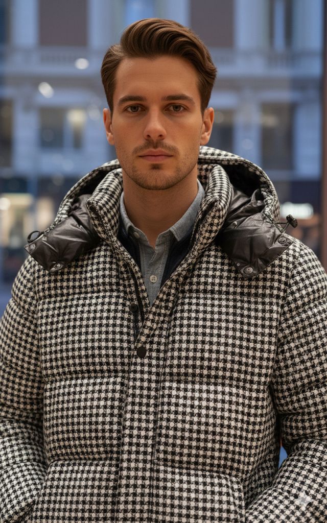 Premium Houndstooth Puffer Jacket with Hood –