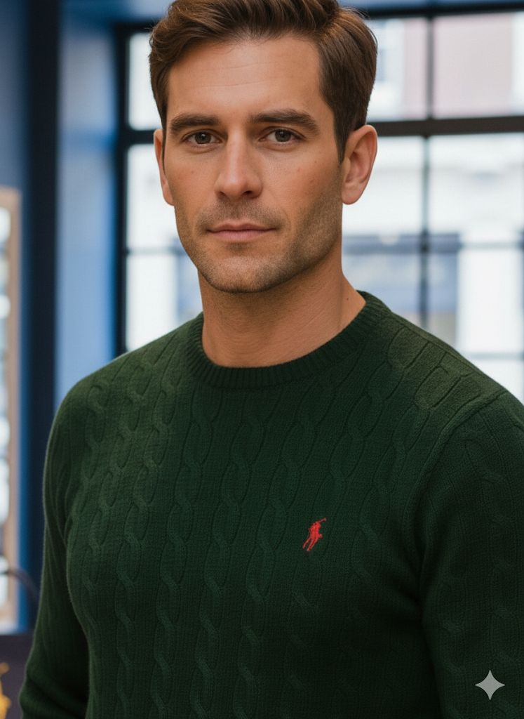Luxury Cable-Knit Wool-Cashmere Green Jumper
