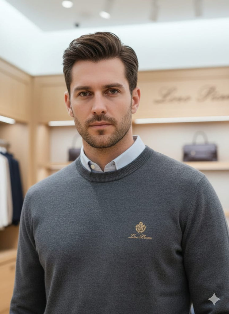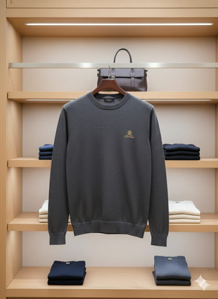 Premium Grey Crewneck Pullover for Men with Minimal Gold Logo