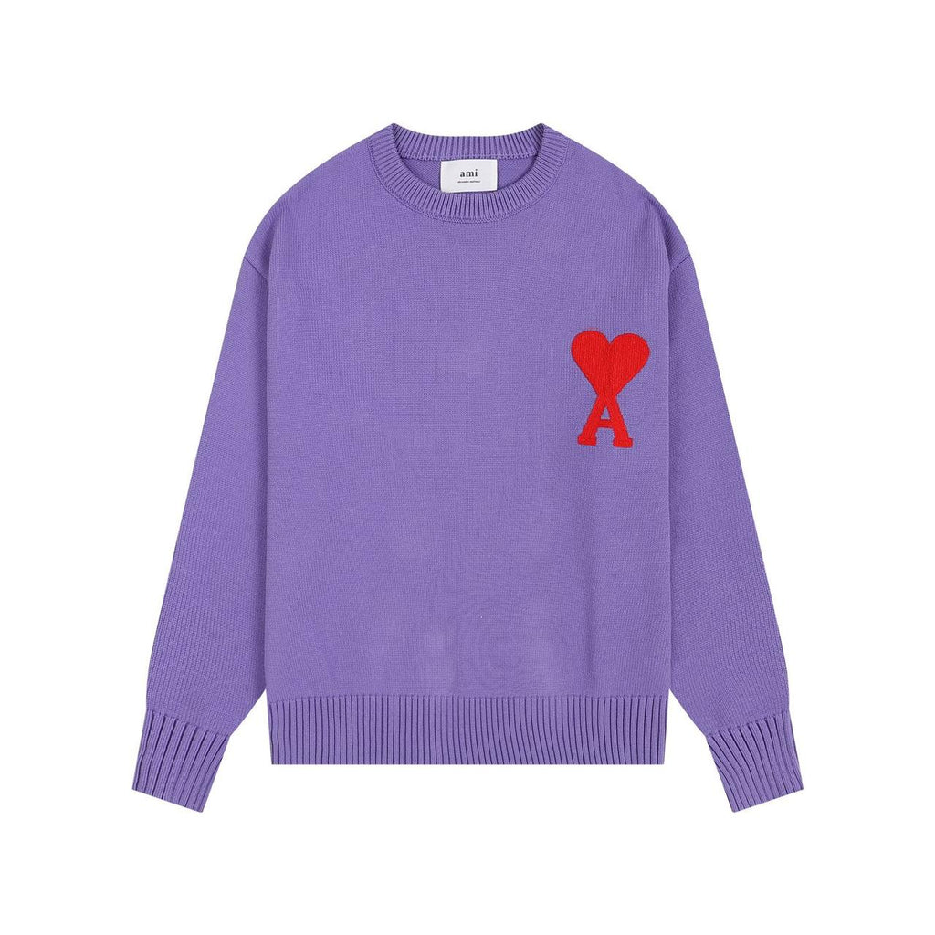 • Vibrant puple crewneck sweater with the signature brand heart logo in red, embroidered on the chest