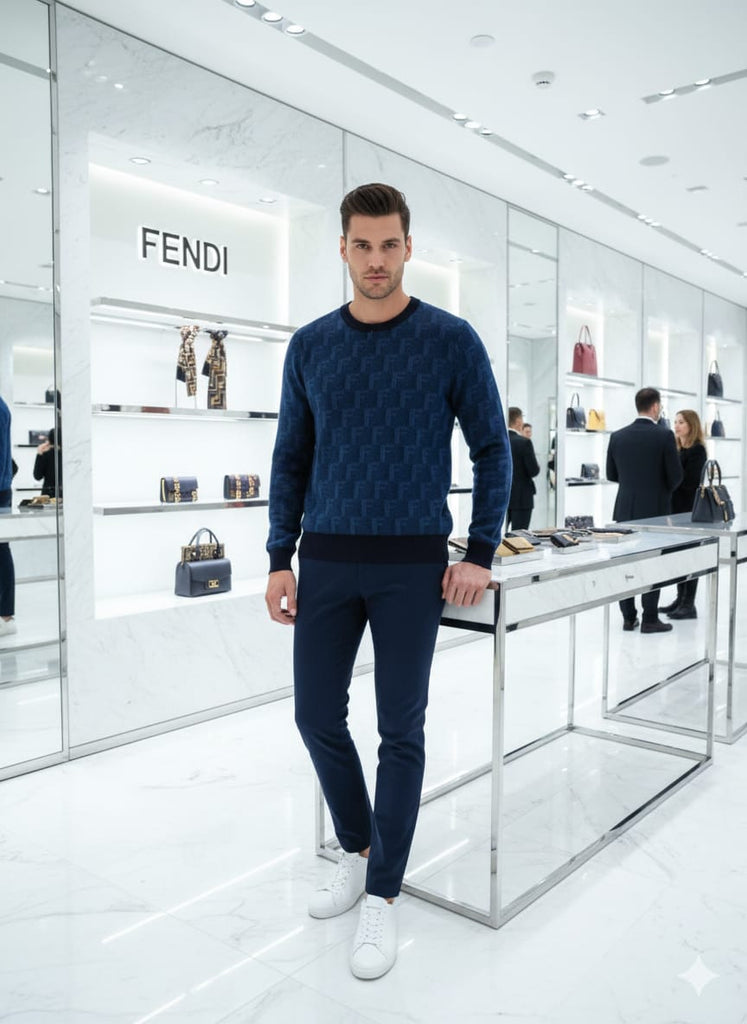 All-over monogram or "FF" logo pattern, adding texture and brand recognition.