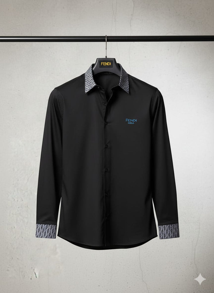 Black Luxury Shirt with Signature Patterned Collar & Cuffs