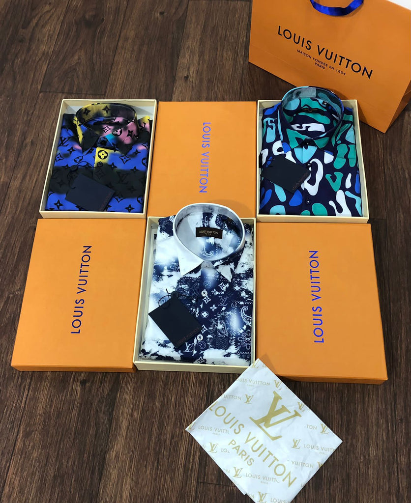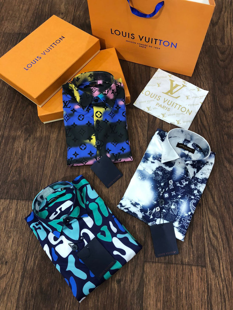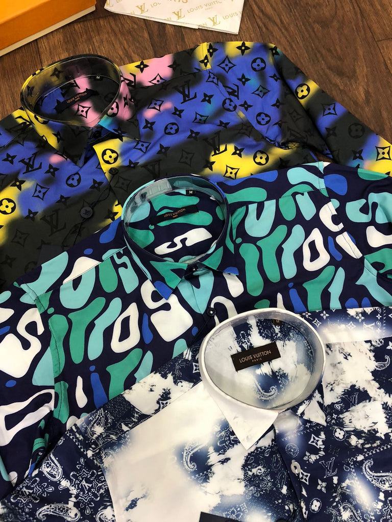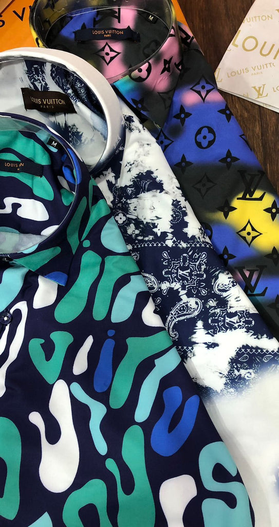This long-sleeved cotton shirt features an eye-catching allover Long Camo print. Contrasting shades of blue and green add further vibrancy to the bold graphic motif. This piece has a neat button-down collar and a buttoned front closure.
