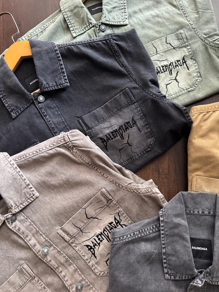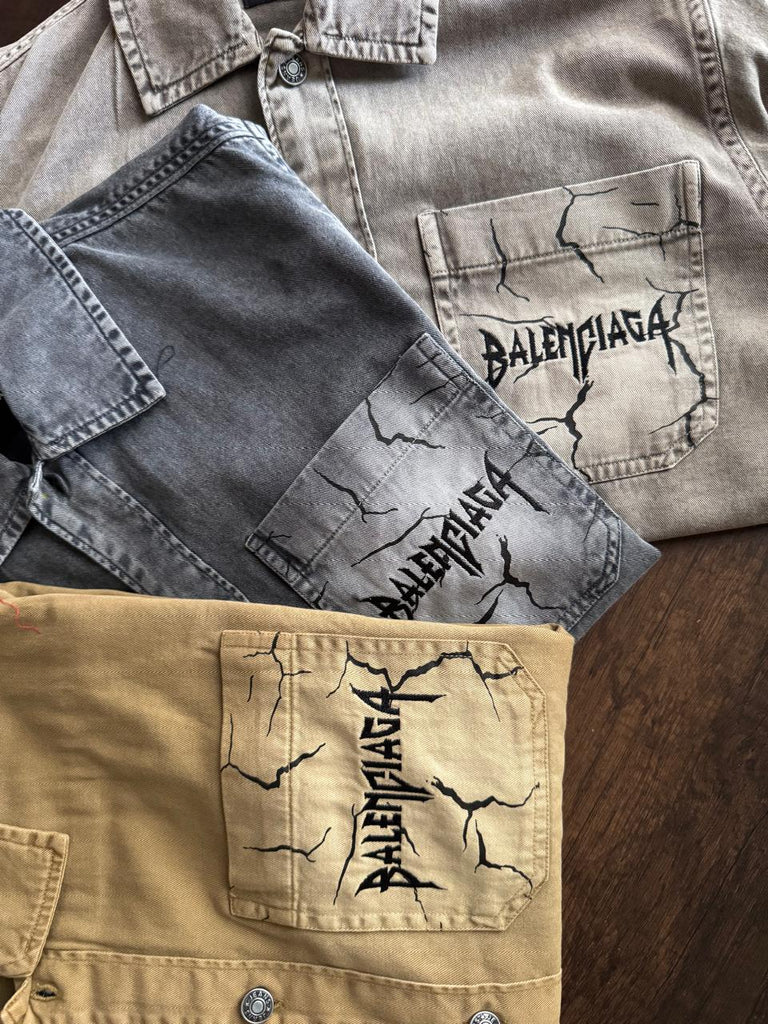 Luxury Balenciaga Vintage-Wash Denim Shirt with Logo Pocket Detail