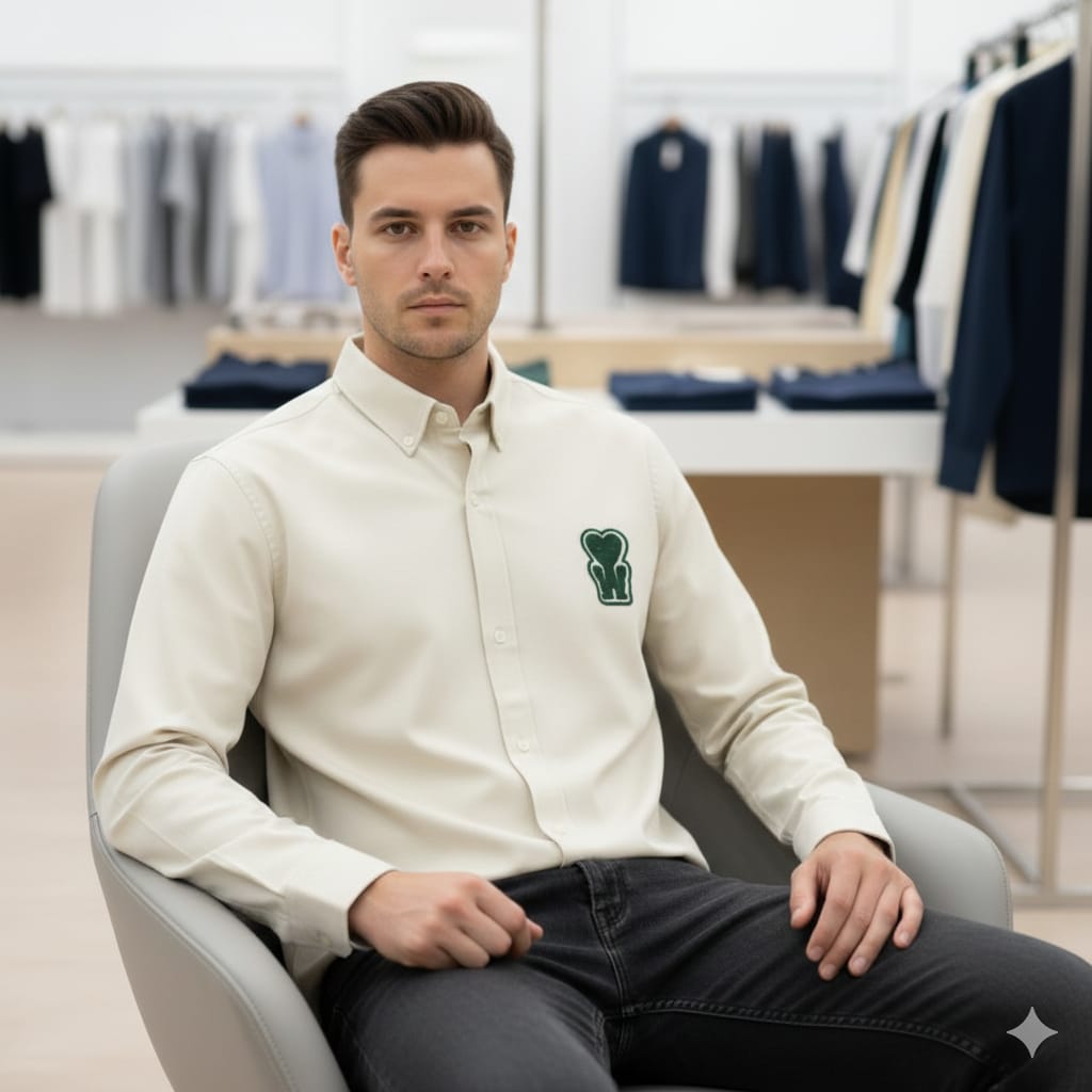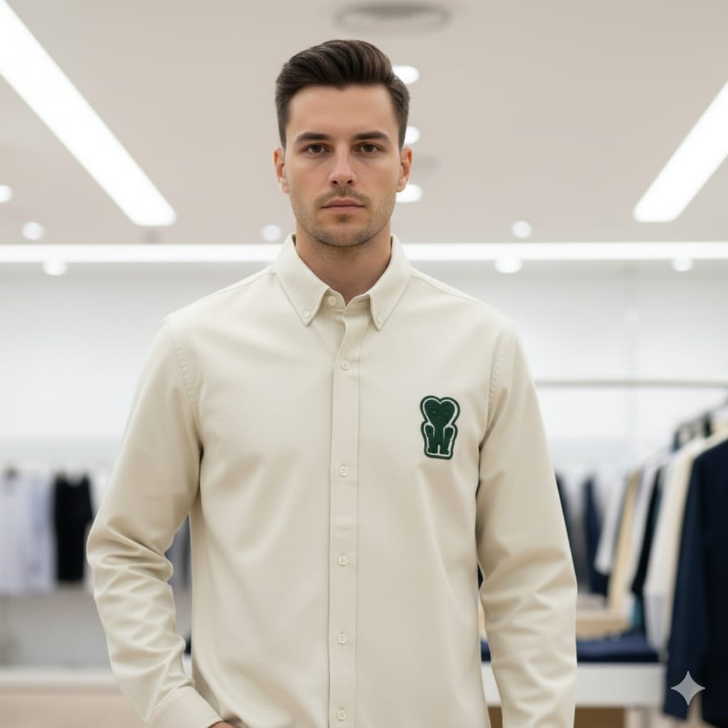 Luxury New Collection Beige Button-Down Shirt with Heart Logo
